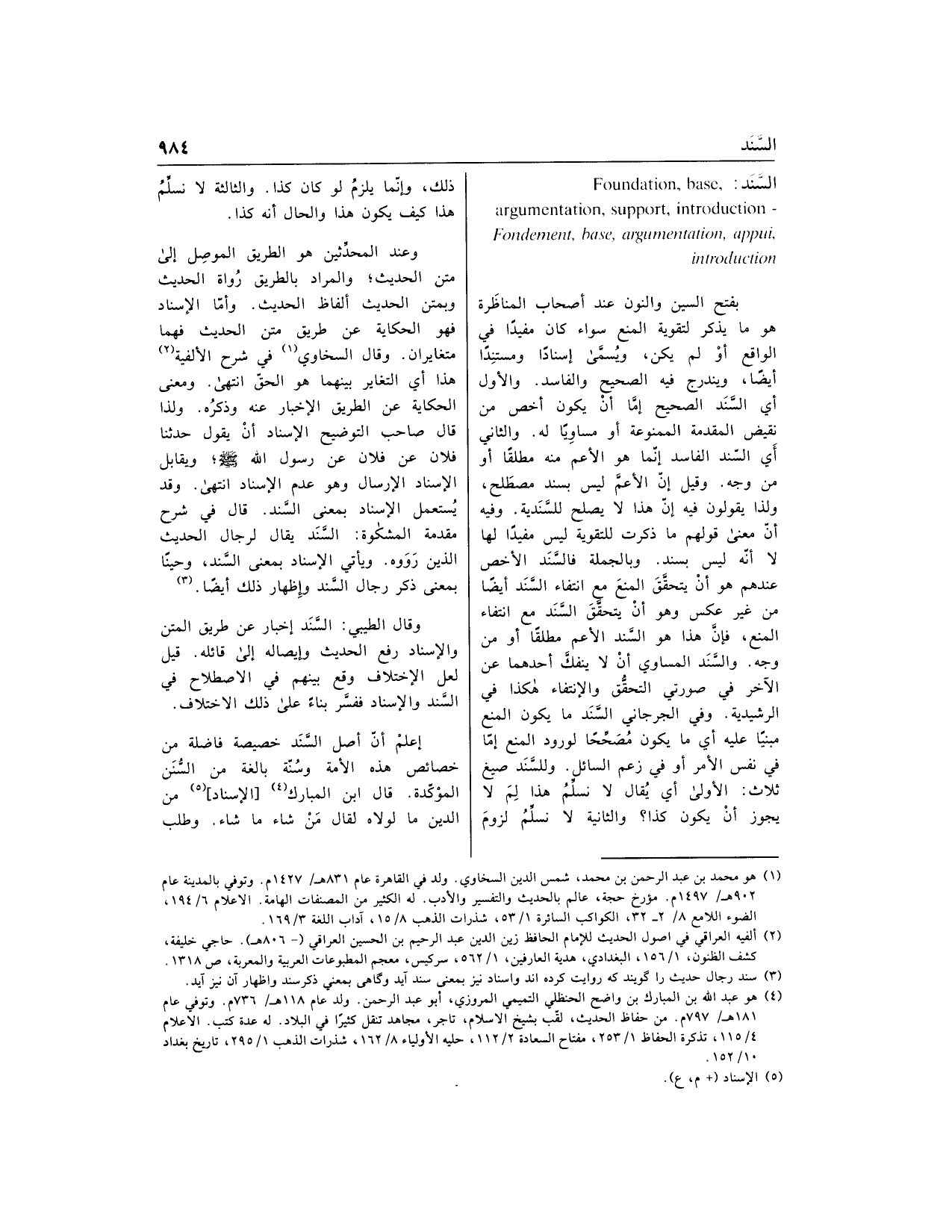 (3) سند رجال حديث را گويند كه روايت كرده اند واسناد نيز بمعنى سند آيد وگاهى بمعني ذكر سند واظهار آن نيز آيد.