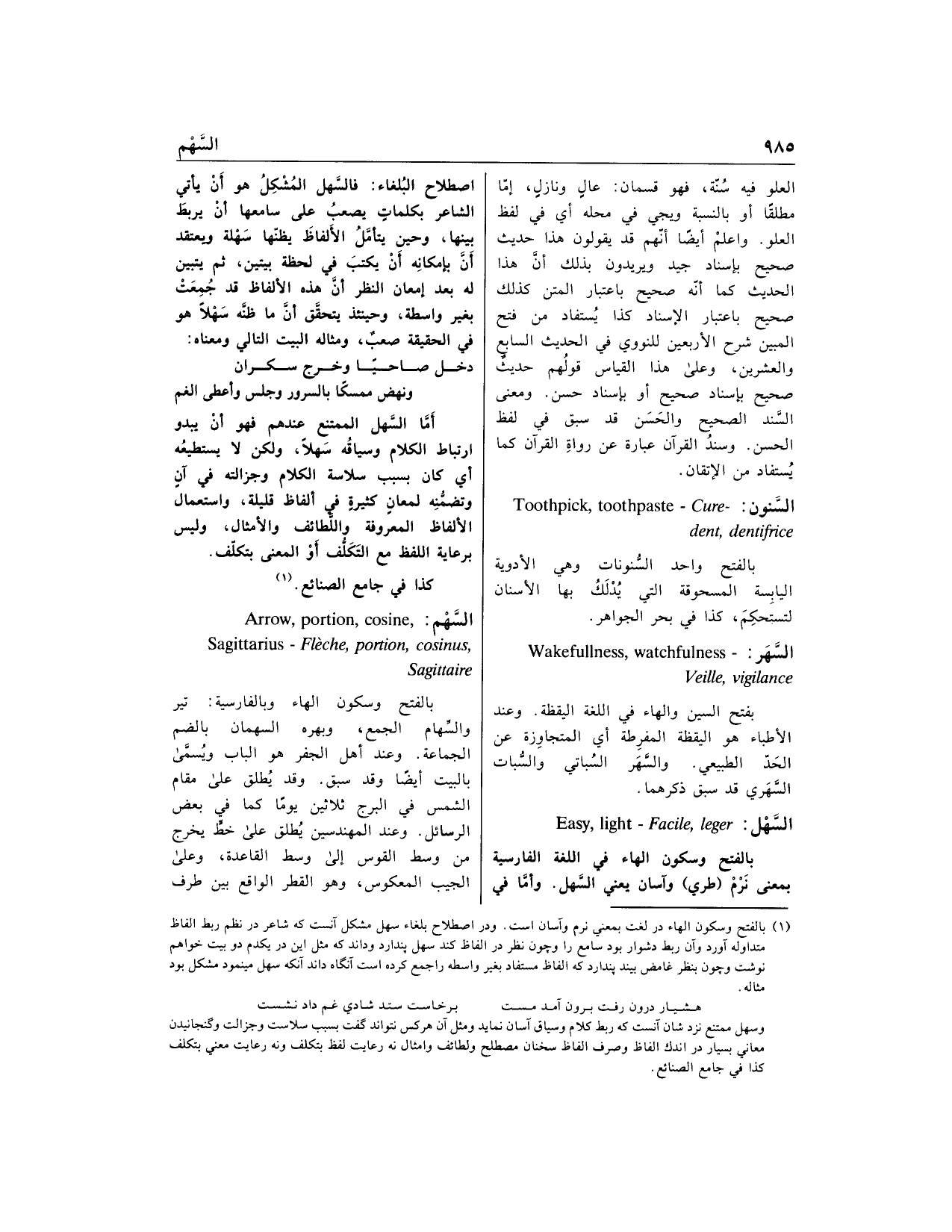 (1) بالفتح وسكون الهاء در لغت بمعني نرم وآسان است. ودر اصطلاح بلغاء سهل مشكل آنست كه شاعر در نظم ربط الفاظ متداوله آورد وآن ربط دشوار بود سامع را وچون نظر در الفاظ كند سهل پندارد وداند كه مثل اين در يكدم دو بيت خواهم نوشت وچون بنظر غامض بيند پندارد كه الفاظ مستفاد بغير واسطه را جمع كرده است آنگاه داند آنكه سهل مى نمود مشكل بود مثاله.