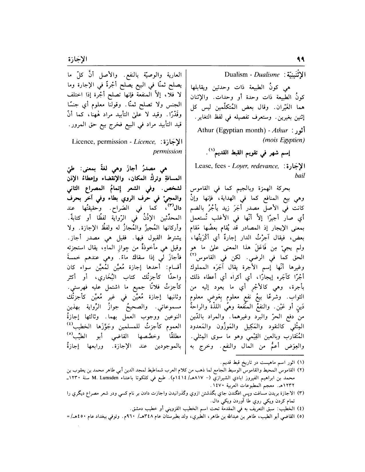 (3) الاجازة بريدن مسافت وپس افگندن جاي بگذشتن از وى وگذرانيدن واجازت دادن بر نام كسي ودر شعر مصراع ديگرى را تمام كردن ويكى روي طا آوردن ويكى دال.