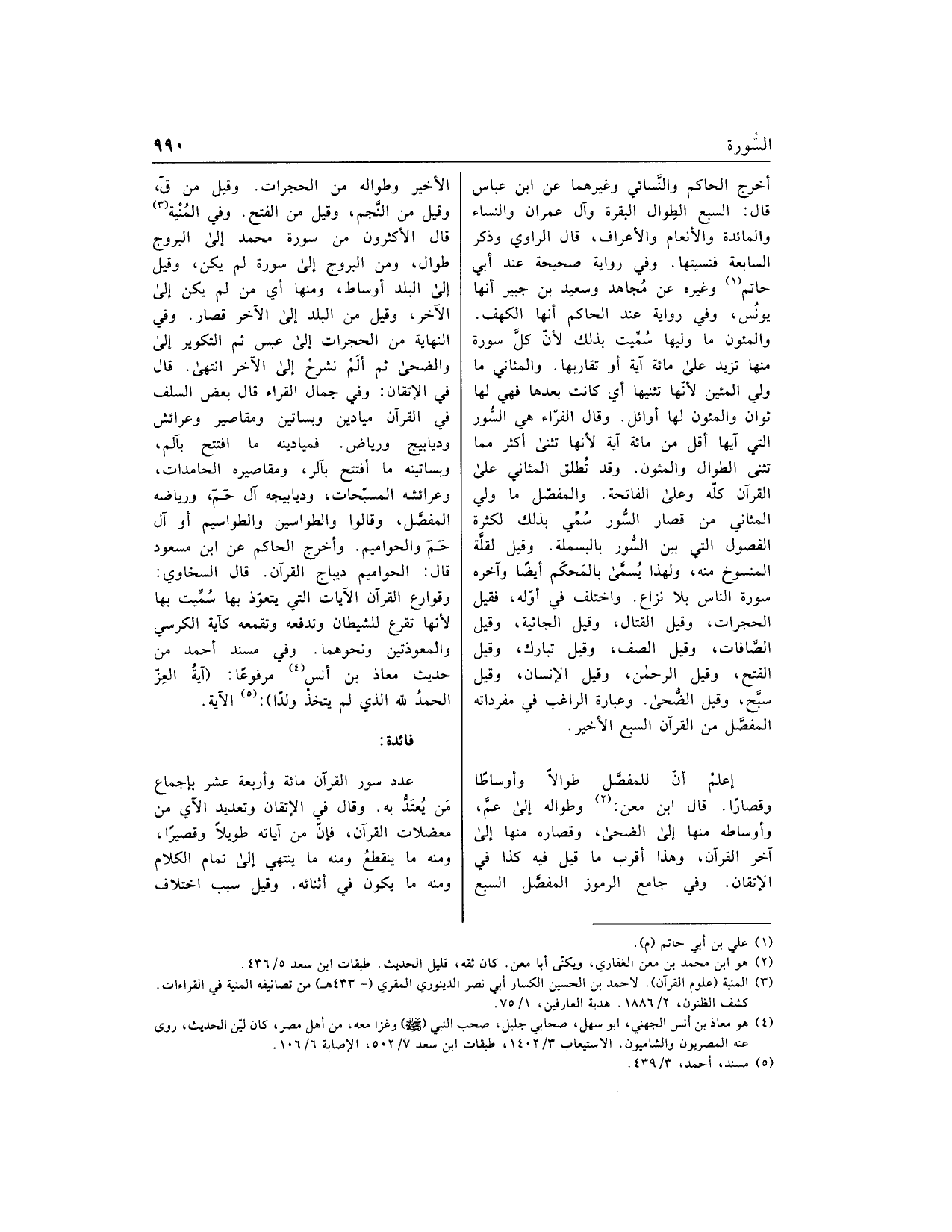 عدد سور القرآن مائة وأربعة عشر بإجماع من يعتدّ به. وقال في الإتقان وتعديد الآي من معضلات القرآن، فإنّ من آياته طويلا وقصيرا، ومنه ما ينقطع ومنه ما ينتهي إلى تمام الكلام ومنه ما يكون في أثنائه. وقيل سبب اختلاف