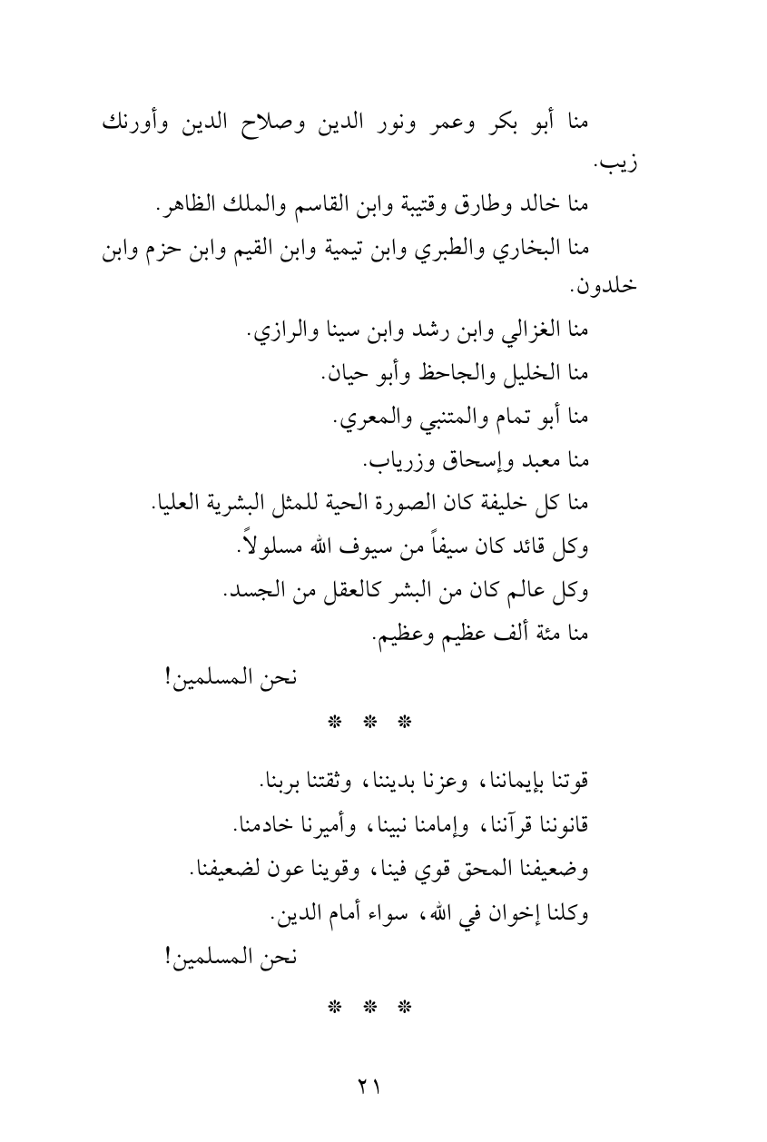 منا أبو بكر وعمر ونور الدين وصلاح الدين وأورنك زيب.