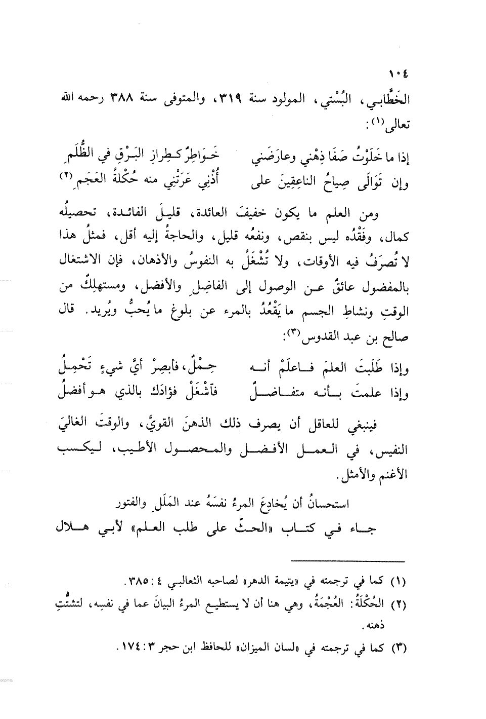 جاء في كتاب ((الحث على طلب العلم)) لأبي هلال