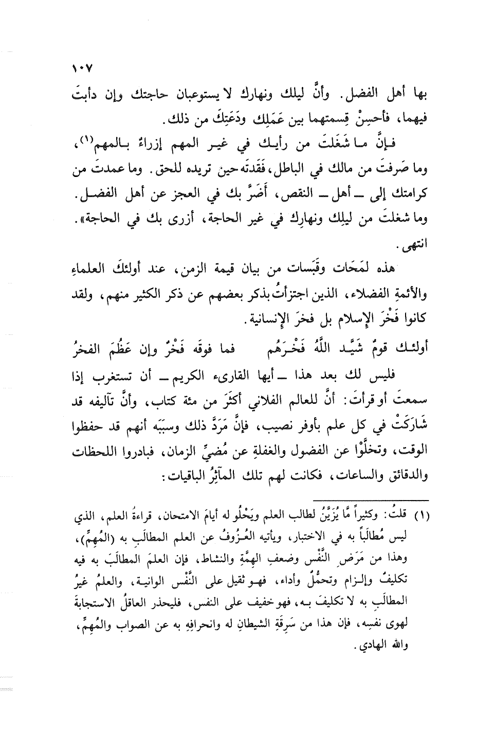 فليس لك بعد هذا - أيها القارئ الكريم - أن تستغرب إذا سمعت أو قرأت: أن للعالم الفلاني أكثر من مئة كتاب، وأن تآليفه قد شاركت في كل علم بأوفر نصيب، فإن مرد ذلك وسببه أنهم قد حفظوا الوقت، وتخلوا عن الفضول والغفلة عن مضي الزمان، فبادروا اللحظات والدقائق والساعات، فكانت لهم تلك المآثر الباقيات: