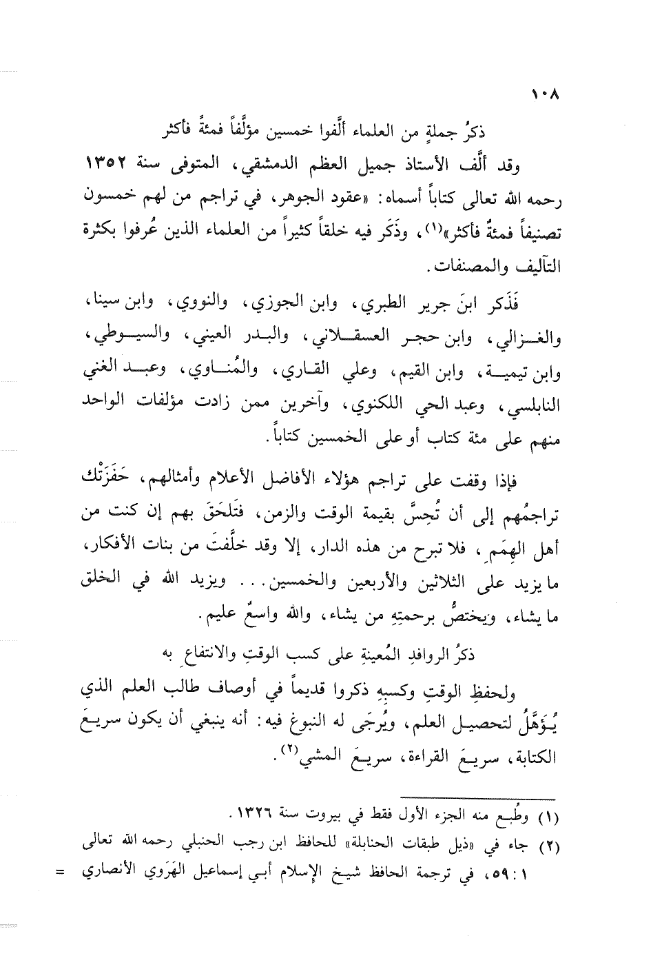 فإذا وقفت على تراجم هؤلاء الأفاضل الأعلام وأمثالهم، حفزتك تراجمهم إلى أن تحس بقيمة الوقت والزمن، فتلحق بهم إن كنت من أهل الهمم، فلا تبرح من هذه الدار، إلا وقد خلفت من بنات الأفكار، ما يزيد على الثلاثين والأربعين والخمسين ... ويزيد الله في الخلق ما يشاء، ويختص برحمته من يشاء، والله واسع عليم.