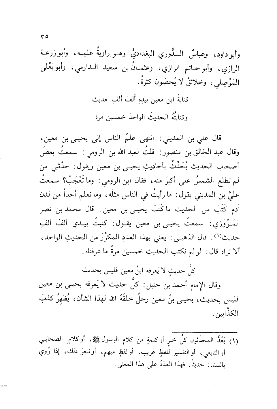 كل حديث لا يعرفه ابن معين فليس بحديث وقال الإمام أحمد بن حنبل: كل حديث لا يعرفه يحيى بن معين فليس بحديث، يحيى بن معين رجل خلقه الله لهذا الشأن، يظهر كذب الكذابين.
