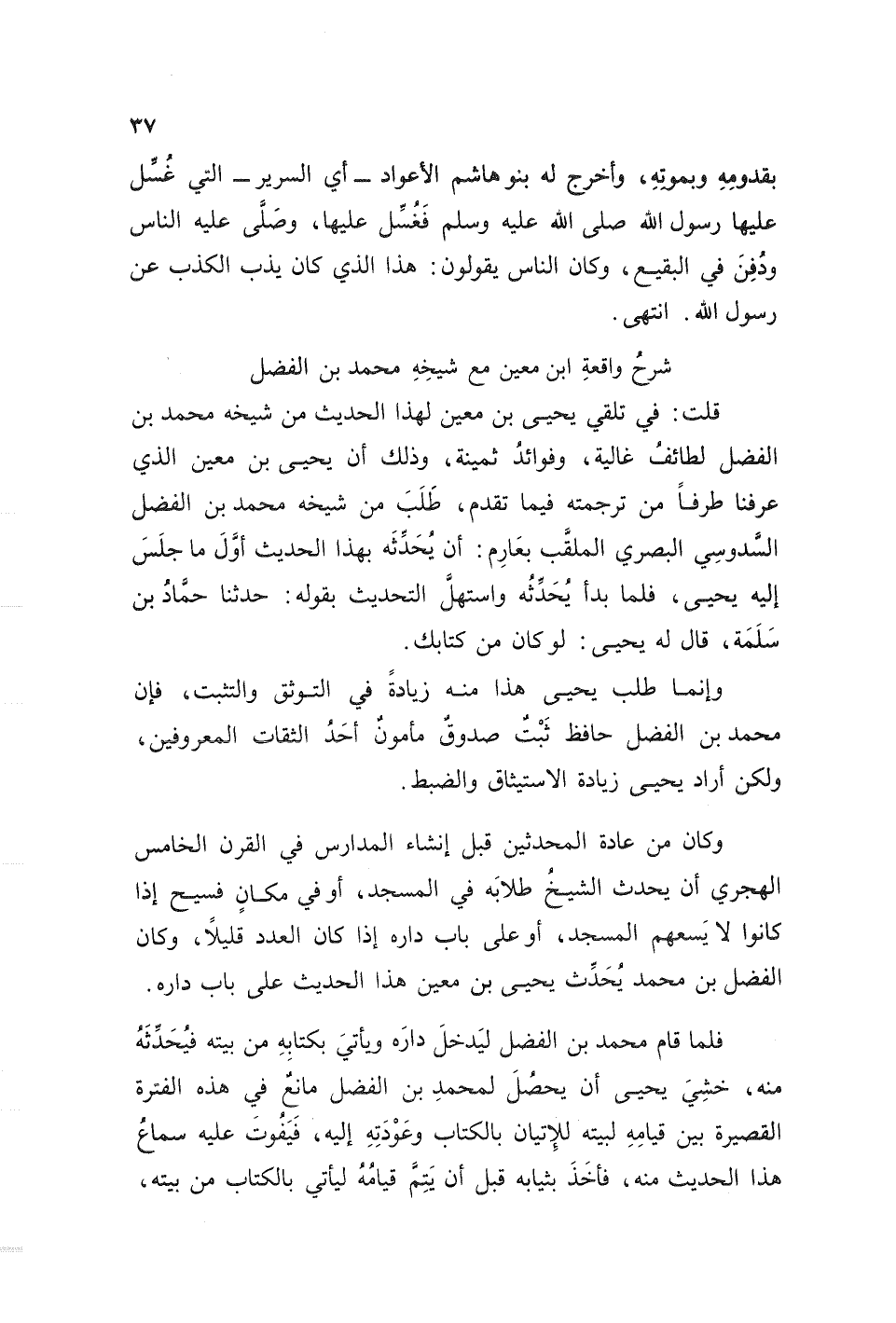 شرح واقعة ابن معين مع شيخه محمد بن الفضل