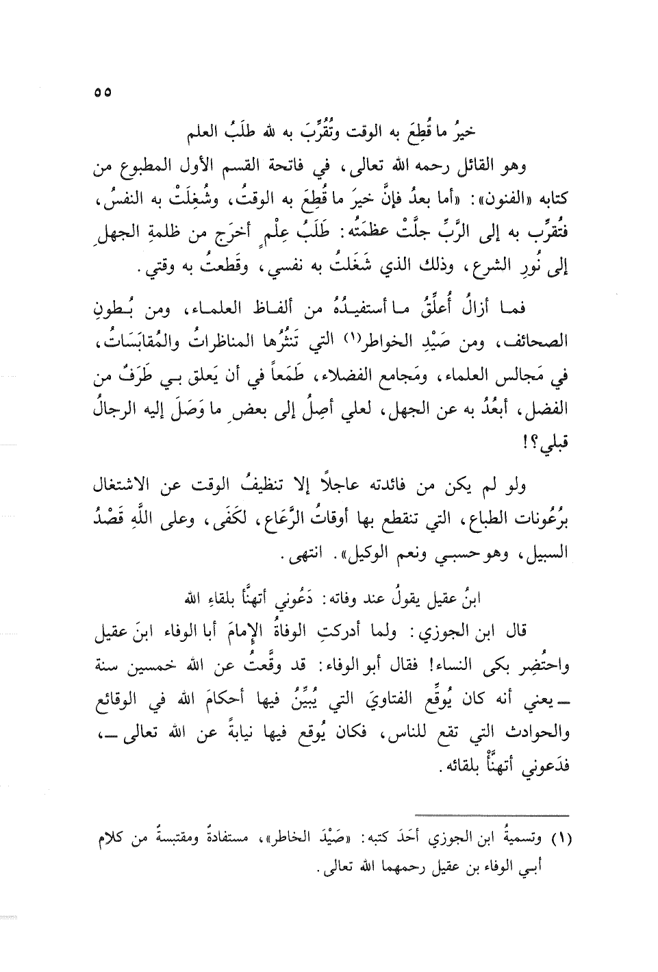 (¬1) وتسمية ابن الجوزي أحد كتبه: ((صيد الخاطر))، مستفادة ومقتبسة من كلام أبي الوفاء بن عقيل رحمهما الله تعالى.