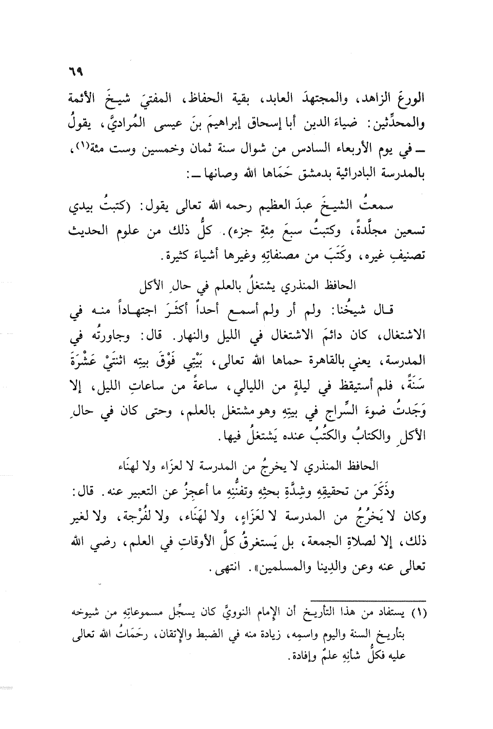 (¬1) يستفاد من هذا التأريخ أن الإمام النووي كان يسجل مسموعاته من شيوخه بتأريخ السنة واليوم واسمه، زيادة منه في الضبط والإتقان، رحمات الله تعالى عليه فكل شأنه علم وإفادة.