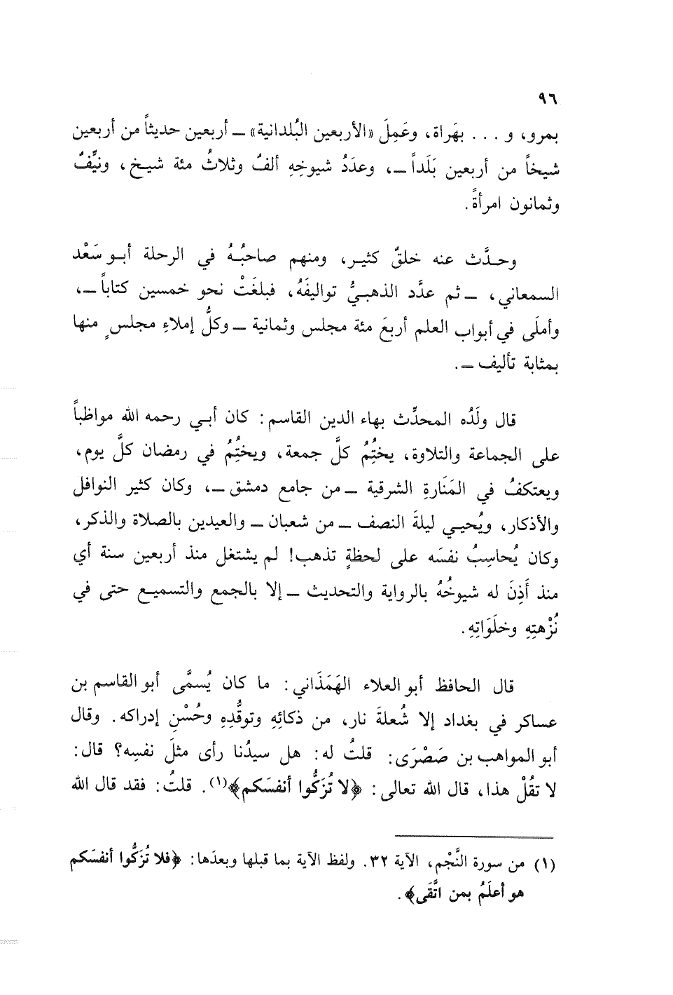 (¬1) من سورة النجم، الآية 32. ولفظ الآية بما قبلها وبعدها: (فلا تزكوا أنفسكم هو أعلم بمن اتقى).