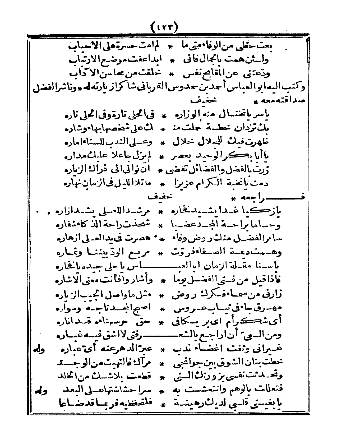زرت بالفضل والفضائل تقضي ... أن نوالي إلى ذراك الزياره