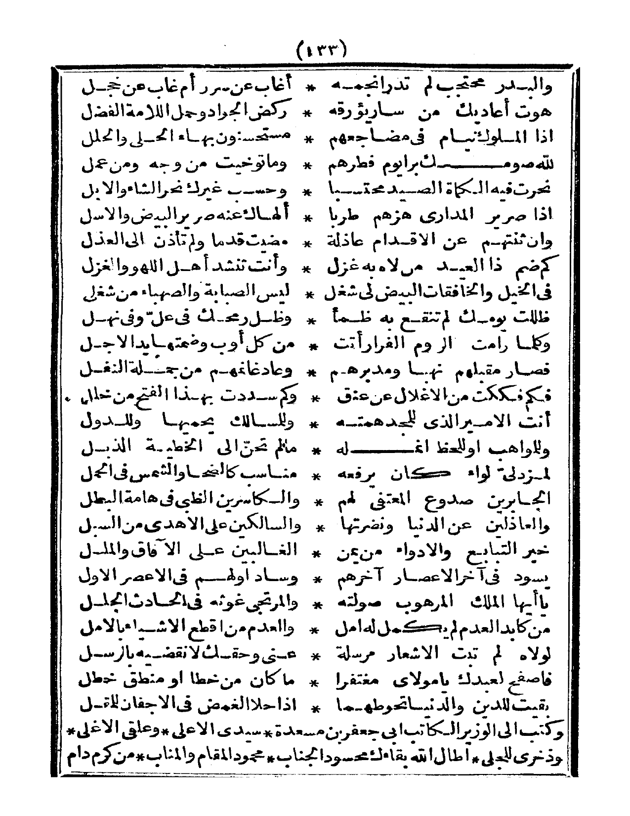 وكتب إلى الوزير الكاتب أبي جعفر بن مسعدة، سيدي الأعلى، وعلقي الأغلى، وذخري للجلى، أطال الله بقاءك محسود الجناب، محمود المقام والمناب، من كرم دام