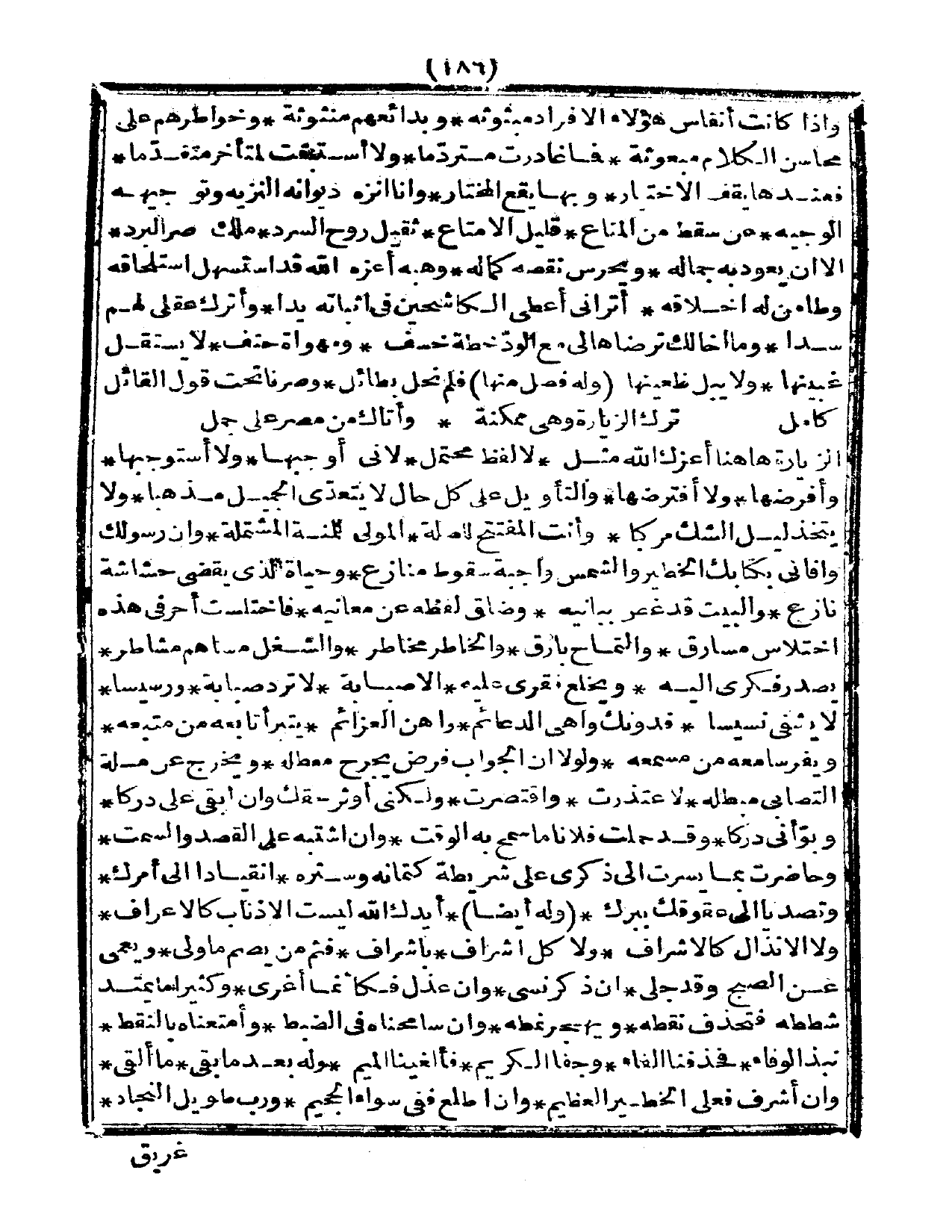 وإذا كانت أنفاس هؤلاء الفراد مثبوتة، وبدائعهم منثوثة، وخواطرهم على محاسن الكلام مبعوثة، فما غادرت متردما، ولا استبقت لمتاخر متقدما، فعندما يقف الاختيار، وبها يقع المختار، وأنا أنزه ديوانه النزيه، وتوجيهه الوجيه، عن سقط من المتاع، وبها يقع المختار، وأنا أنزه ديوانه النزيه، وتوجيهه الوجيه، عن سقط من المتاع، قليل المتاع، ثقيل روح السرد، مهلك صر البرد، إلا أن يعود به جماله، ويحرس نقصه كماله، وهبه اعزه الله قد استسهل استلحاقه، وطامن له أخلاقه، اتراني أعطي الكاشحين في أثباته يدا، وأترك عقلي لهم سدا، وما أخالك ترضاها لي مع الود خطة خسف، ومهواة حتف، لا يستقل غبينها، ولا يبل ظعينها، وله فصل منها، فلم نحل بطائل وصرنا تحت قول القائل: كامل