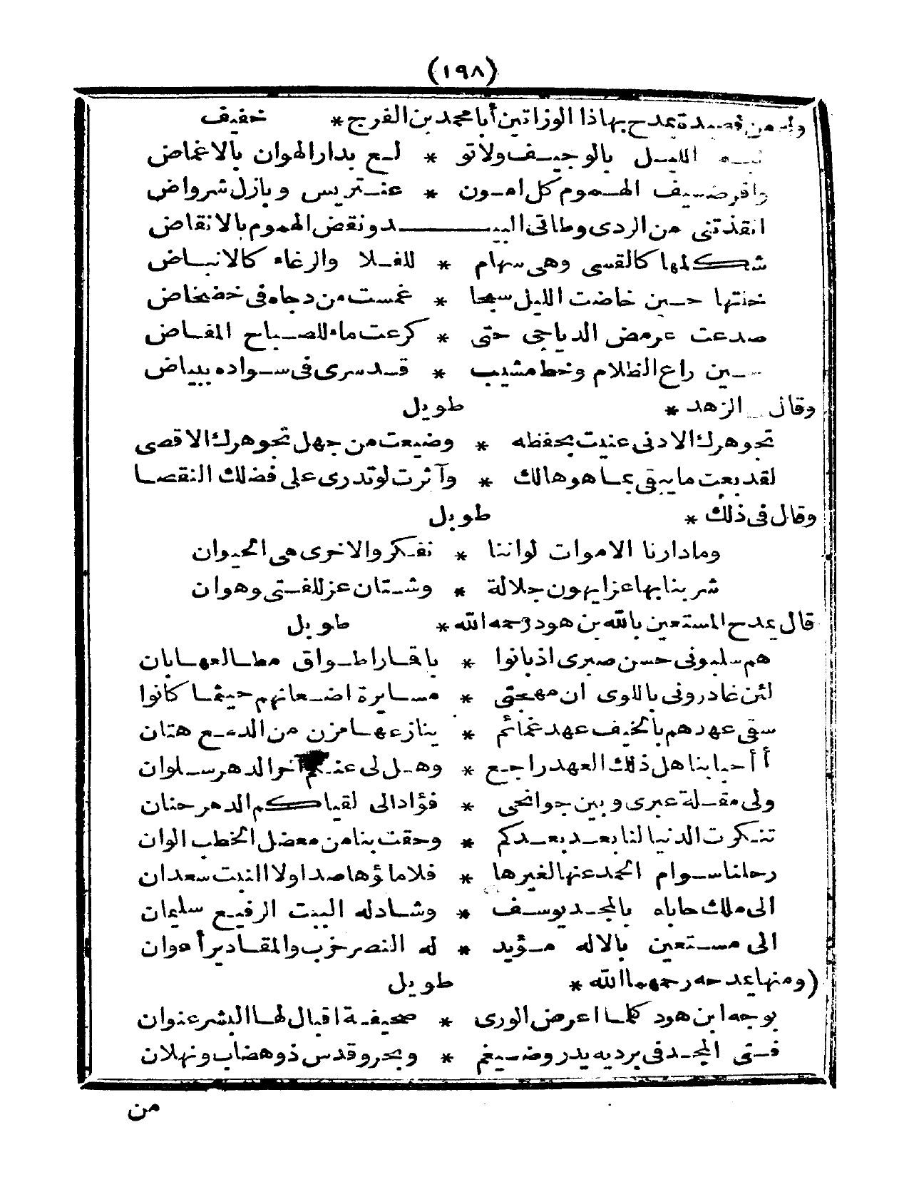 وله من قصيدة يمدح بها ذا الوزارتين أبا محمد بن الفرج. خفيف