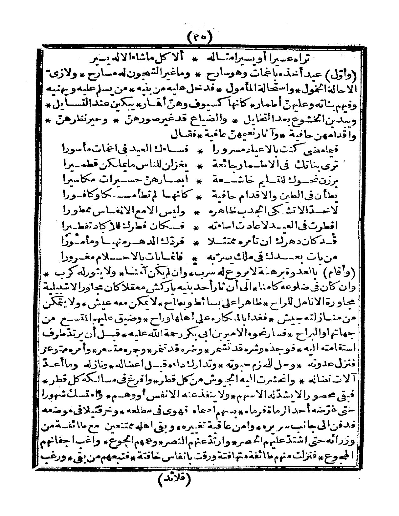 وأول عيد أخذه باغمات وهو سارح، وما غير الشجون له مسارح، ولا زيّ إلاّ حالة الخمول، واستحالة المأمول، فدخل عليه من بينه، من يسلم عليه ويهنيه، وفيهم بناته وعليهنّ أطمار، كأنّها كسوف وهنّ أقمار، يبكين عند التسايل، ويبدين الخشوع بعد التخايل، والضياع قد غير صورهن، وحير نظرهن، وأقدامهن حافية، وأثار نعيمهن عافية، فقال: بسيط