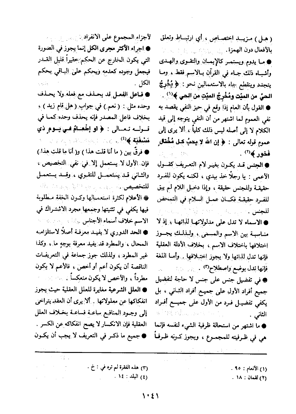 القَوْل بِأَن الْعَام إِذا وَقع فِي حيّز النَّفْي يقْصد بِهِ نفي الْعُمُوم لما اشْتهر من أَن النَّفْي يتَوَجَّه إِلَى قيد الْكَلَام لَا إِلَى أَصله لَيْسَ ذَلِك كلياً، أَلا يرى إِلَى عُمُوم قَوْله تَعَالَى: {إِن الله لَا يحب كل مختال فخور} .