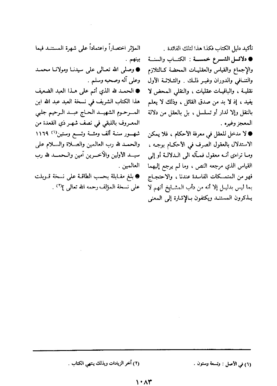 الْحَمد لله الَّذِي أتم على هَذَا العَبْد الضَّعِيف هَذَا الْكتاب الشريف فِي نُسْخَة العَبْد عبد الله ابْن المرحوم الشَّهِيد الْحَاج عبد الرَّحِيم جلبي الْمَعْرُوف باللبقي فِي نصف شهر ذِي الْقعدَة من شهور سنة ألف ومئة وتسع وَسِتِّينَ 1169 وَالْحَمْد لله رب الْعَالمين صلى الله عَلَيْهِ وَسلم على سيد الْأَوَّلين والآخرين آمين وَالْحَمْد لله رب الْعَالمين.