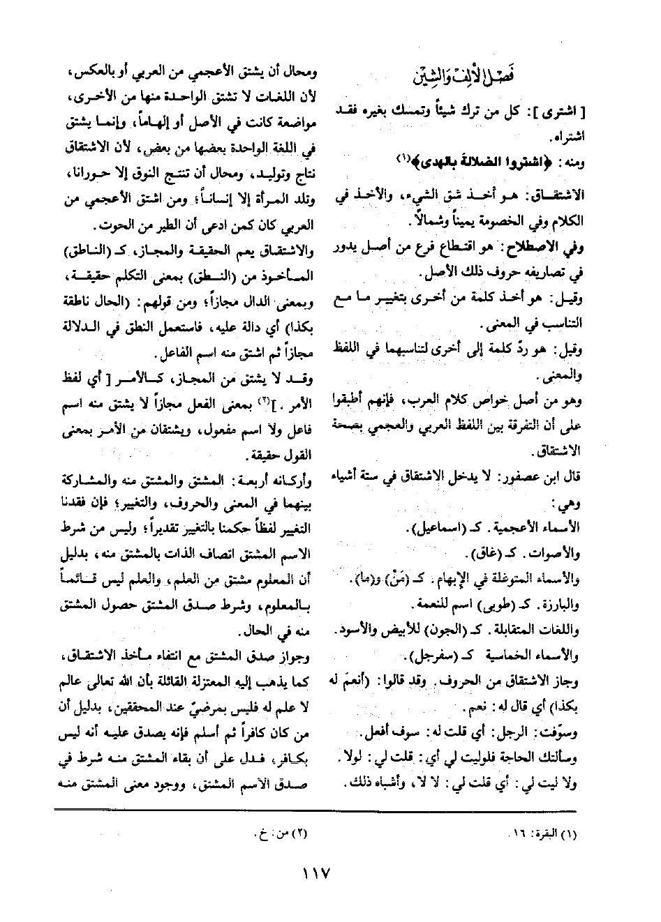 الِاشْتِقَاق: هُوَ أَخذ شقّ الشَّيْء، وَالْأَخْذ فِي الْكَلَام وَفِي الْخُصُومَة يَمِينا وَشمَالًا