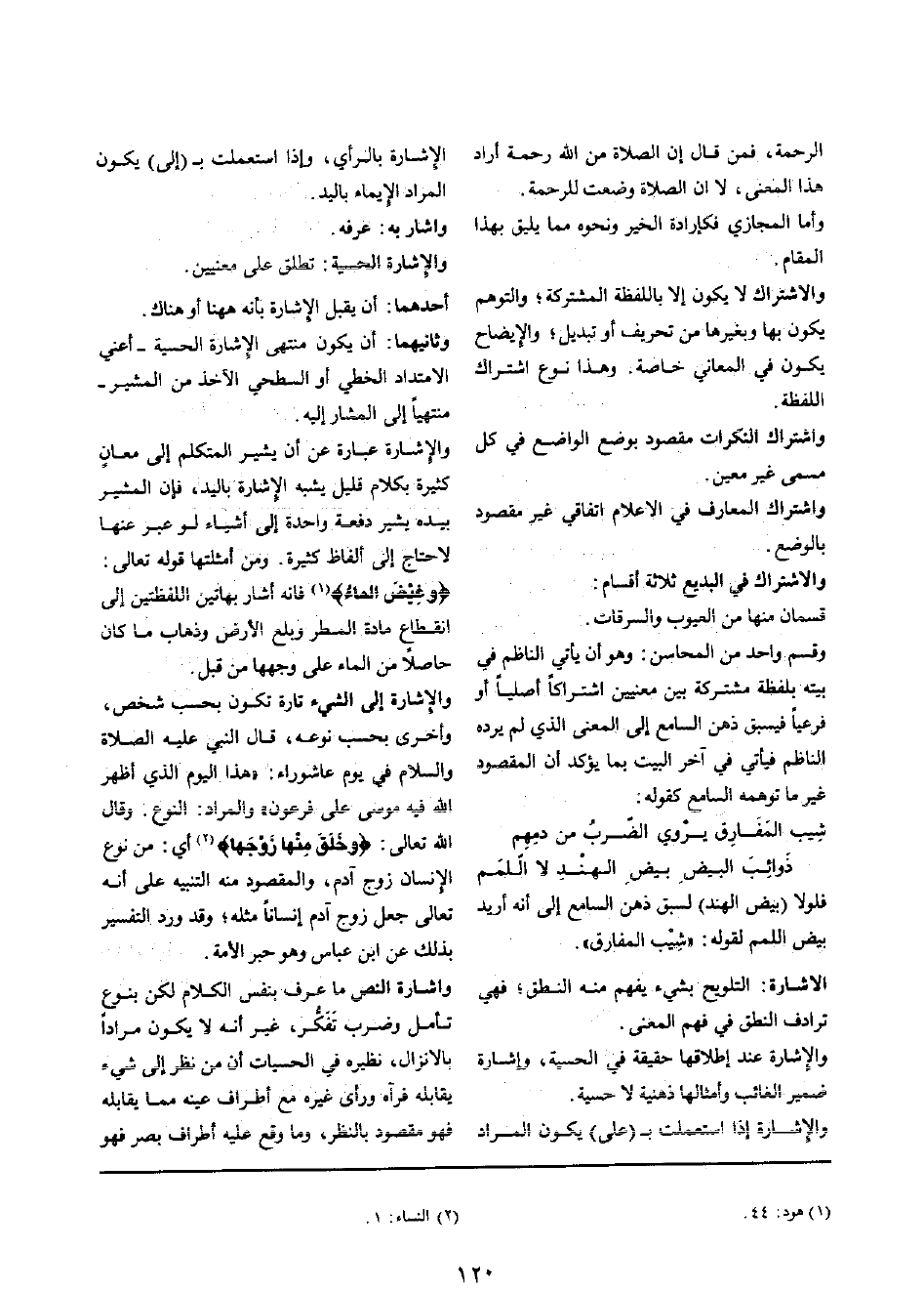 الاشارة: التَّلْوِيح بِشَيْء يفهم مِنْهُ النُّطْق؛ فَهِيَ ترادف النُّطْق فِي فهم الْمَعْنى
