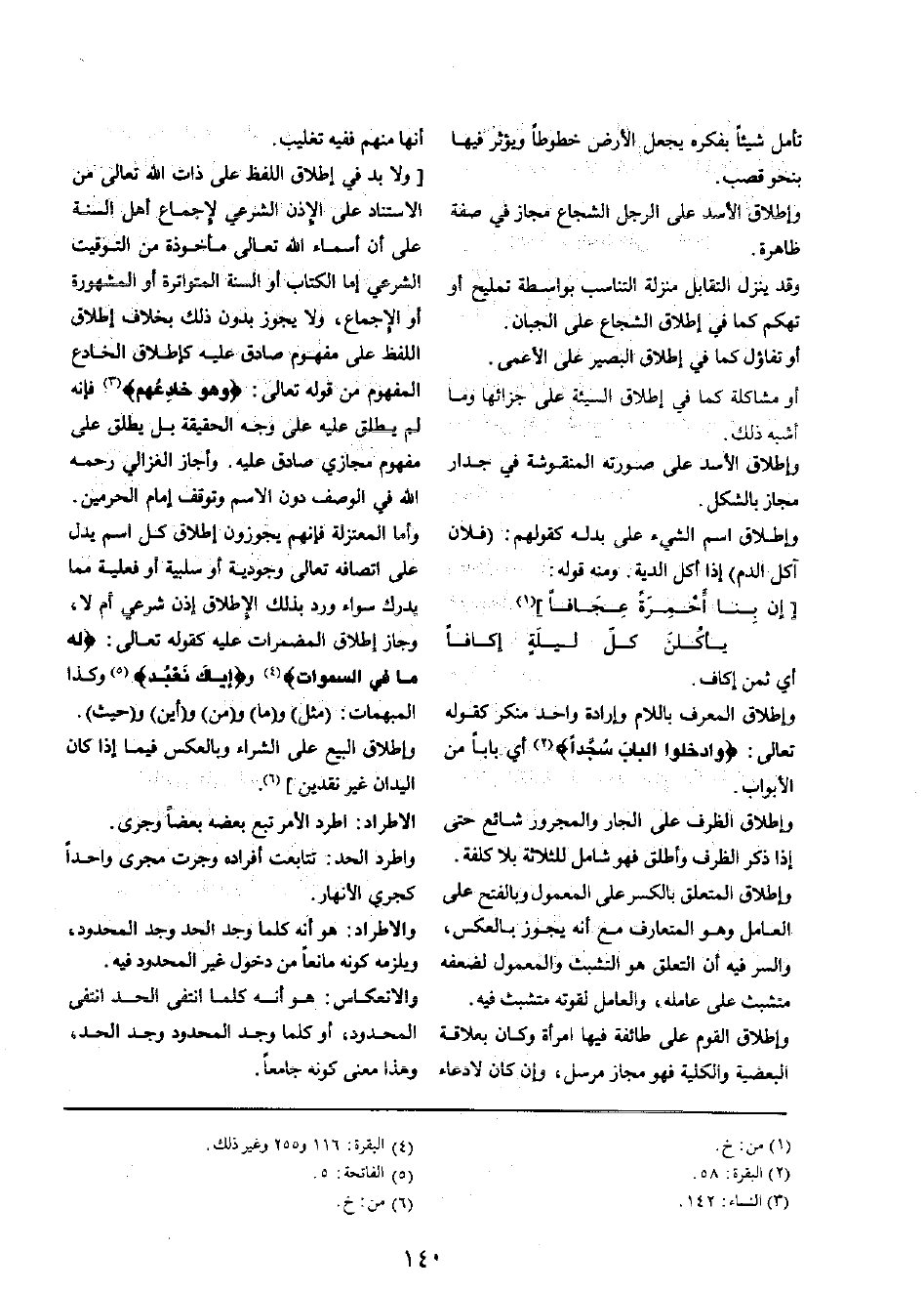 [وَلَا بُد فِي إِطْلَاق اللَّفْظ على ذَات الله تَعَالَى من الِاسْتِنَاد على الْإِذْن الشَّرْعِيّ لإِجْمَاع أهل السّنة على أَن أَسمَاء الله تَعَالَى مَأْخُوذَة من التَّوْقِيت الشَّرْعِيّ إِمَّا الْكتاب أَو السّنة المتواترة أَو الْمَشْهُورَة أَو الْإِجْمَاع، وَلَا يجوز بِدُونِ ذَلِك بِخِلَاف إِطْلَاق اللَّفْظ على مَفْهُوم صَادِق عَلَيْهِ كإطلاق الخادع الْمَفْهُوم من قَوْله تَعَالَى: {وَهُوَ خادعهم} فَإِنَّهُ لم يُطلق عَلَيْهِ على وَجه الْحَقِيقَة بل يُطلق على مَفْهُوم مجازي صَادِق عَلَيْهِ) وَأَجَازَ الْغَزالِيّ رَحمَه الله فِي الْوَصْف دون الِاسْم وَتوقف إِمَام الْحَرَمَيْنِ