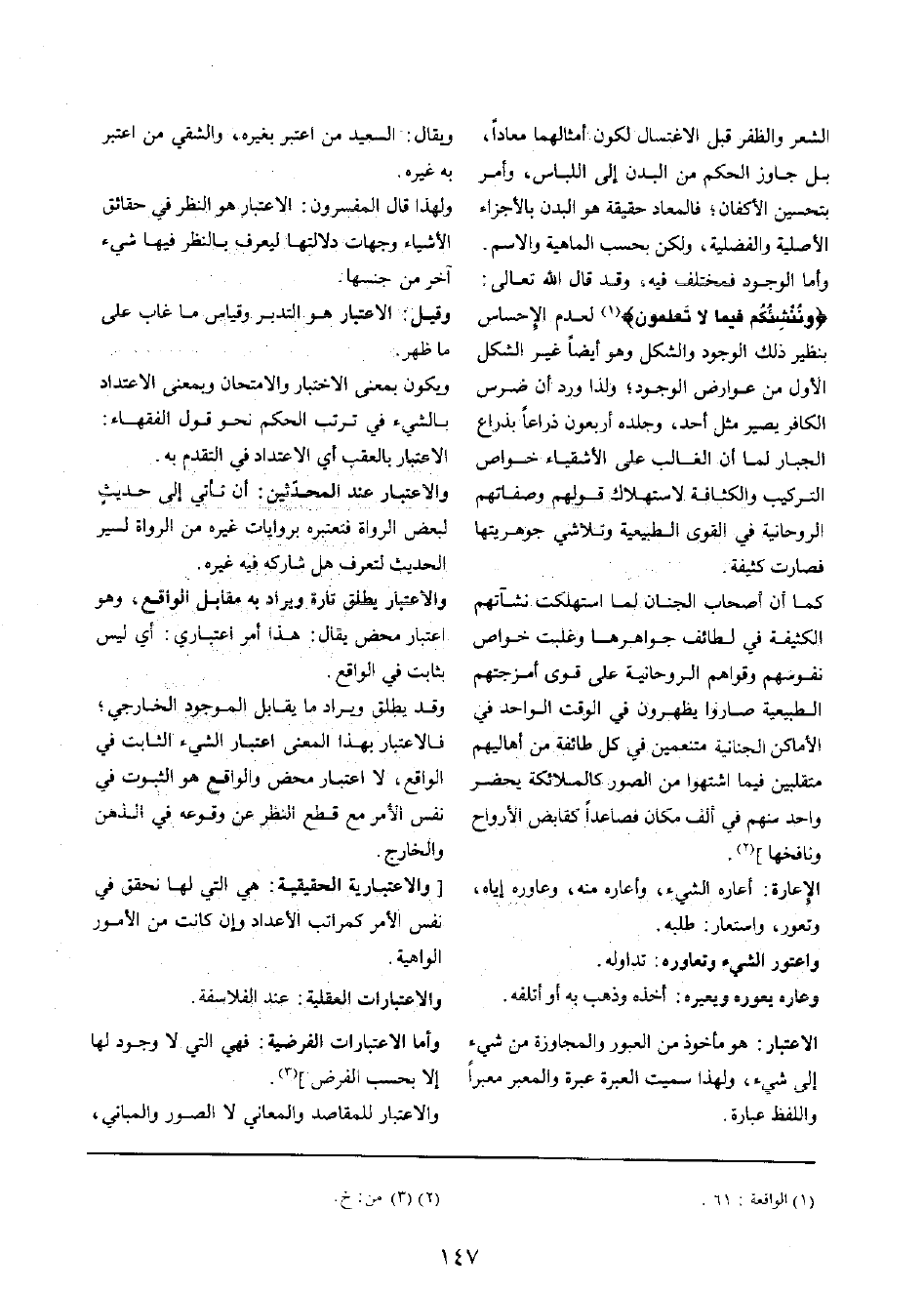وَلِهَذَا قَالَ الْمُفَسِّرُونَ: الِاعْتِبَار هُوَ النّظر فِي حقائق الْأَشْيَاء وجهات دلالتها ليعرف بِالنّظرِ فِيهَا شَيْء آخر من جِنْسهَا