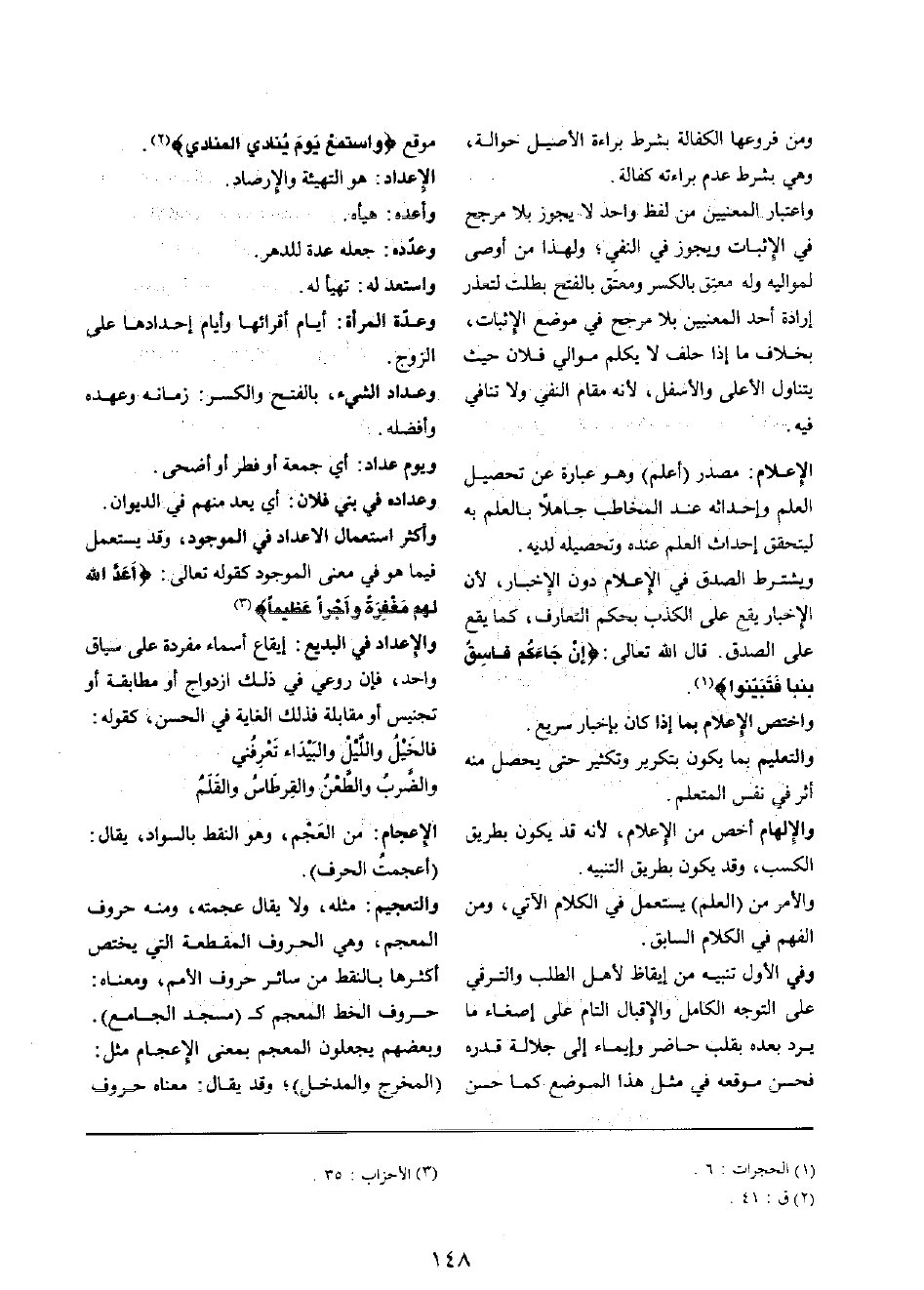 وَأكْثر اسْتِعْمَال الاعداد فِي الْمَوْجُود، وَقد يسْتَعْمل فِيمَا هُوَ فِي معنى الْمَوْجُود كَقَوْلِه تَعَالَى: {أعد الله لَهُم مغْفرَة وَأَجرا عَظِيما}