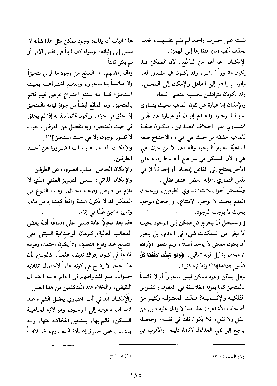 [ويستحيل أَن يخرج كل مُمكن إِلَى الْوُجُود بِحَيْثُ لَا يبْقى من الممكنات شَيْء فِي الْعَدَم، بل يجوز أَن يكون مُمكن لَا يُوجد أصلا، وَلم تتَعَلَّق الْإِرَادَة بِوُجُودِهِ، بِدَلِيل قَوْله تَعَالَى: {وَلَو شِئْنَا لآتينا كل نفس هداها} ونظائره كَثِيرَة