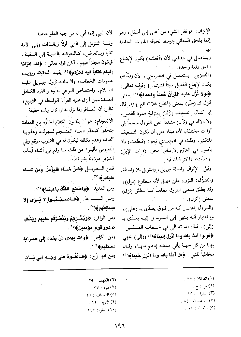 وَالنُّزُول بِاعْتِبَار أَنه من فَوق يعدى ب (على) ، وَبِاعْتِبَار أَنه يَنْتَهِي إِلَى الْمُرْسل إِلَيْهِ يعدى ب (إِلَى) قَالَ الله تَعَالَى فِي خطاب الْمُسلمين: {قُولُوا آمنا بِاللَّه وَمَا أنزل إِلَيْنَا} و (إِلَى) يَنْتَهِي بهَا من كل جِهَة يَأْتِي مبلغه إيَّاهُم مِنْهَا، وَقَالَ مُخَاطبا للنَّبِي: {قل آمنا بِاللَّه وَمَا أنزل علينا} لِأَن النَّبِي إِنَّمَا أُتِي لَهُ من جِهَة الْعُلُوّ خَاصَّة