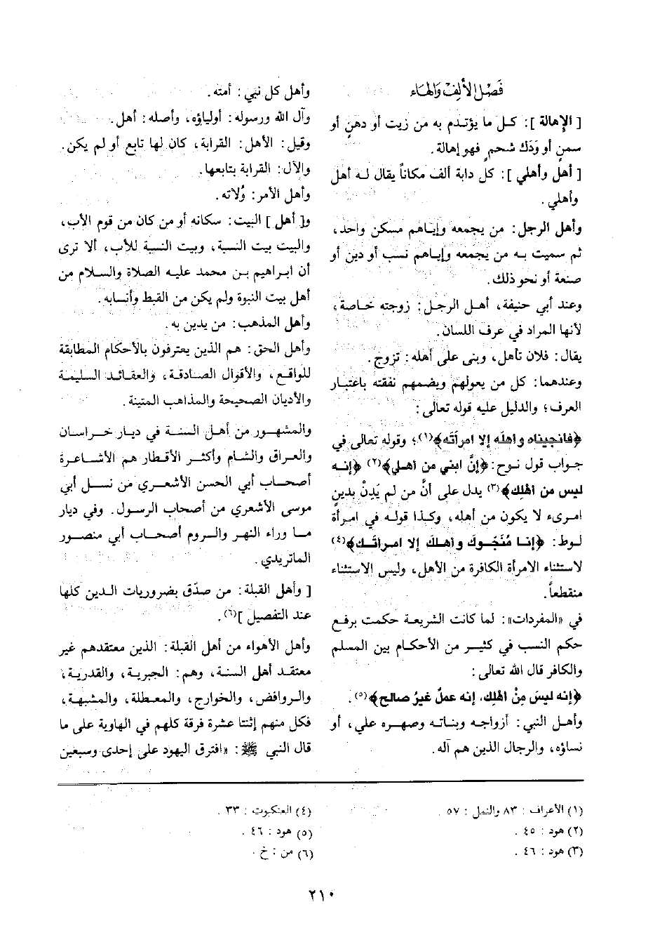 وَأهل الرجل: من يجمعه وإياهم مسكن وَاحِد، ثمَّ سميت بِهِ من يجمعه وإياهم نسب أَو دين أَو صَنْعَة أَو نَحْو ذَلِك