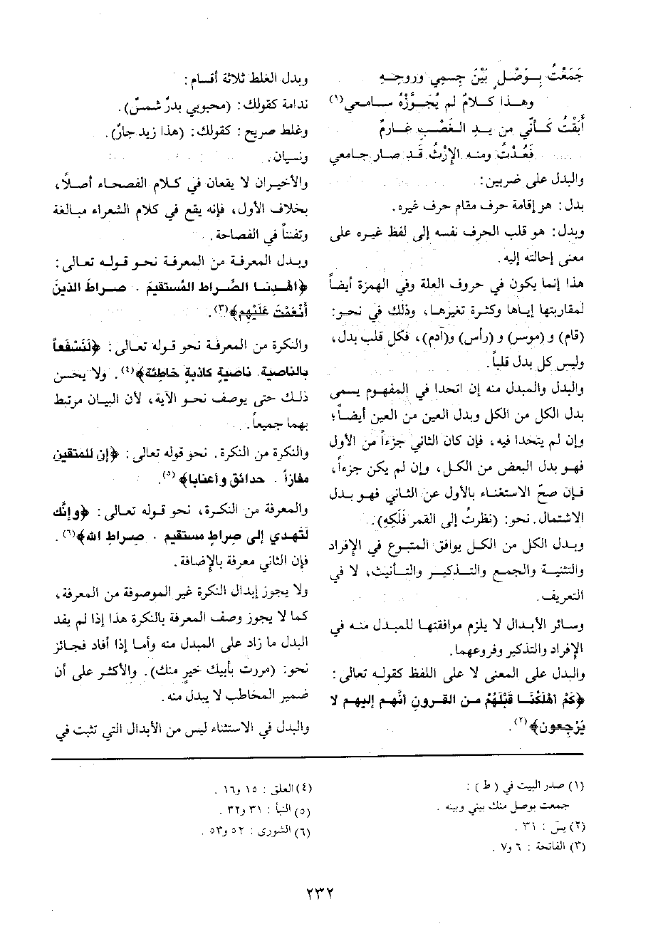 وَبدل الْمعرفَة من الْمعرفَة نَحْو قَوْله تَعَالَى: {اهدنا الصِّرَاط الْمُسْتَقيم صِرَاط الَّذين أَنْعَمت عَلَيْهِم}