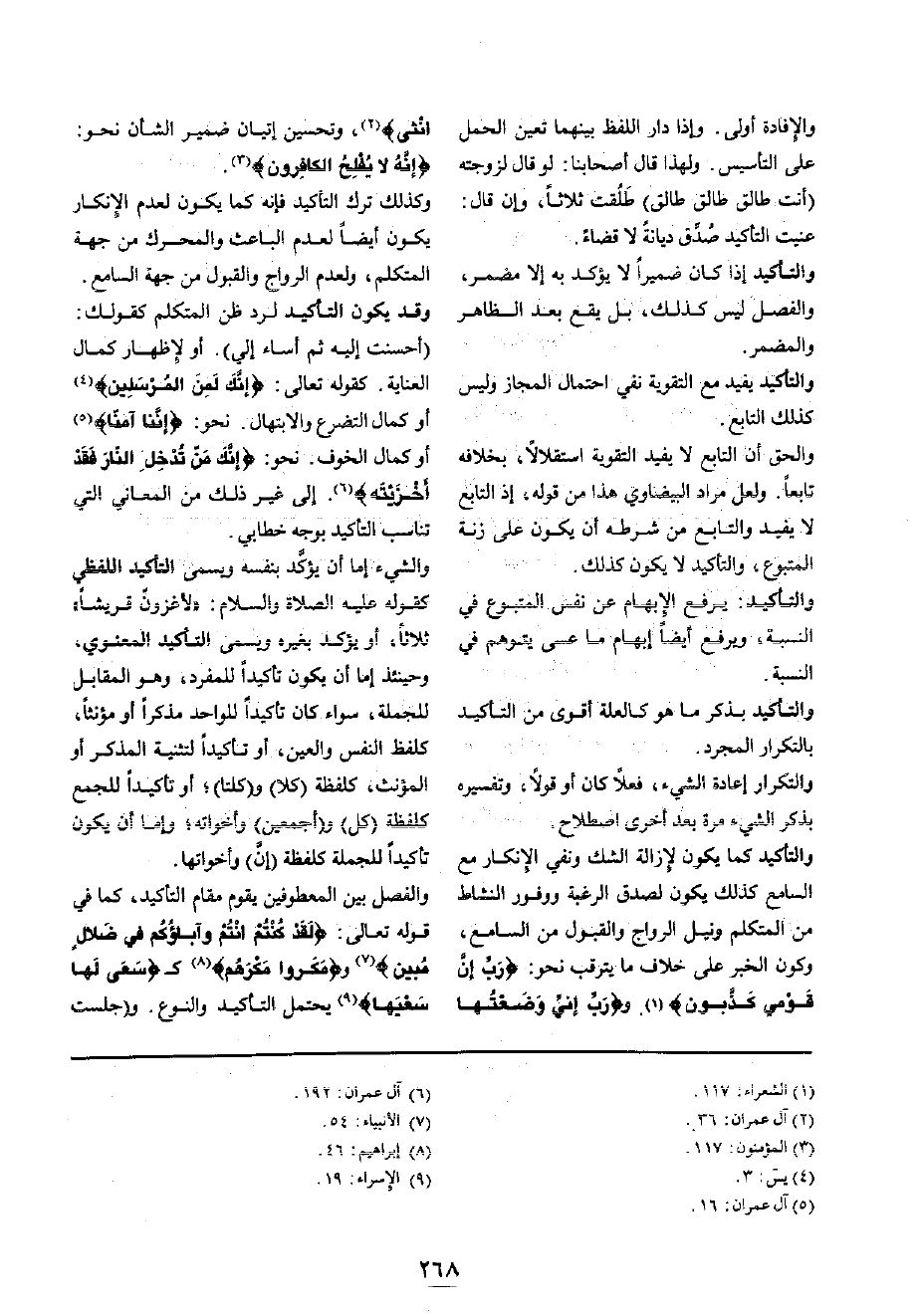 والتأكيد: يرفع الْإِبْهَام عَن نفس الْمَتْبُوع فِي النِّسْبَة، وَيرْفَع أَيْضا إِبْهَام مَا عَسى يتَوَهَّم فِي النِّسْبَة