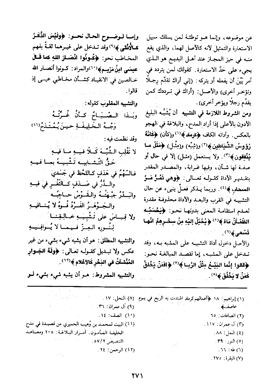 وَالْأَصْل دُخُول أَدَاة التَّشْبِيه على الْمُشبه بِهِ، وَقد تدخل على الْمُشبه، إِمَّا لقصد الْمُبَالغَة نَحْو: {قَالُوا إِنَّمَا البيع مثل الرِّبَا} {أَفَمَن يخلق كمن لَا يخلق}