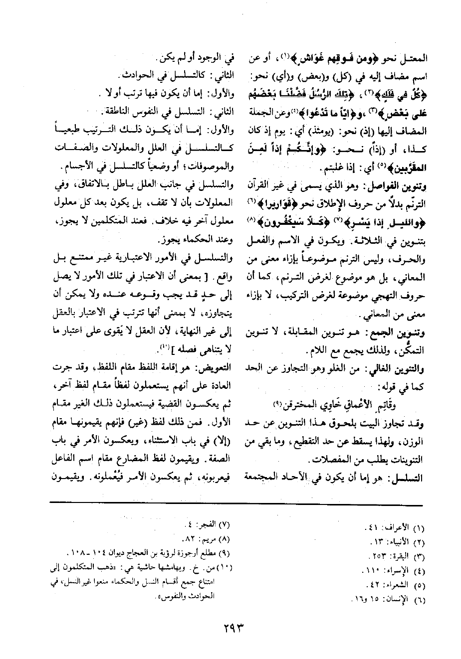 التسلسل: هُوَ إِمَّا أَن يكون فِي الْآحَاد المجتمعة فِي الْوُجُود أَو لم يكن