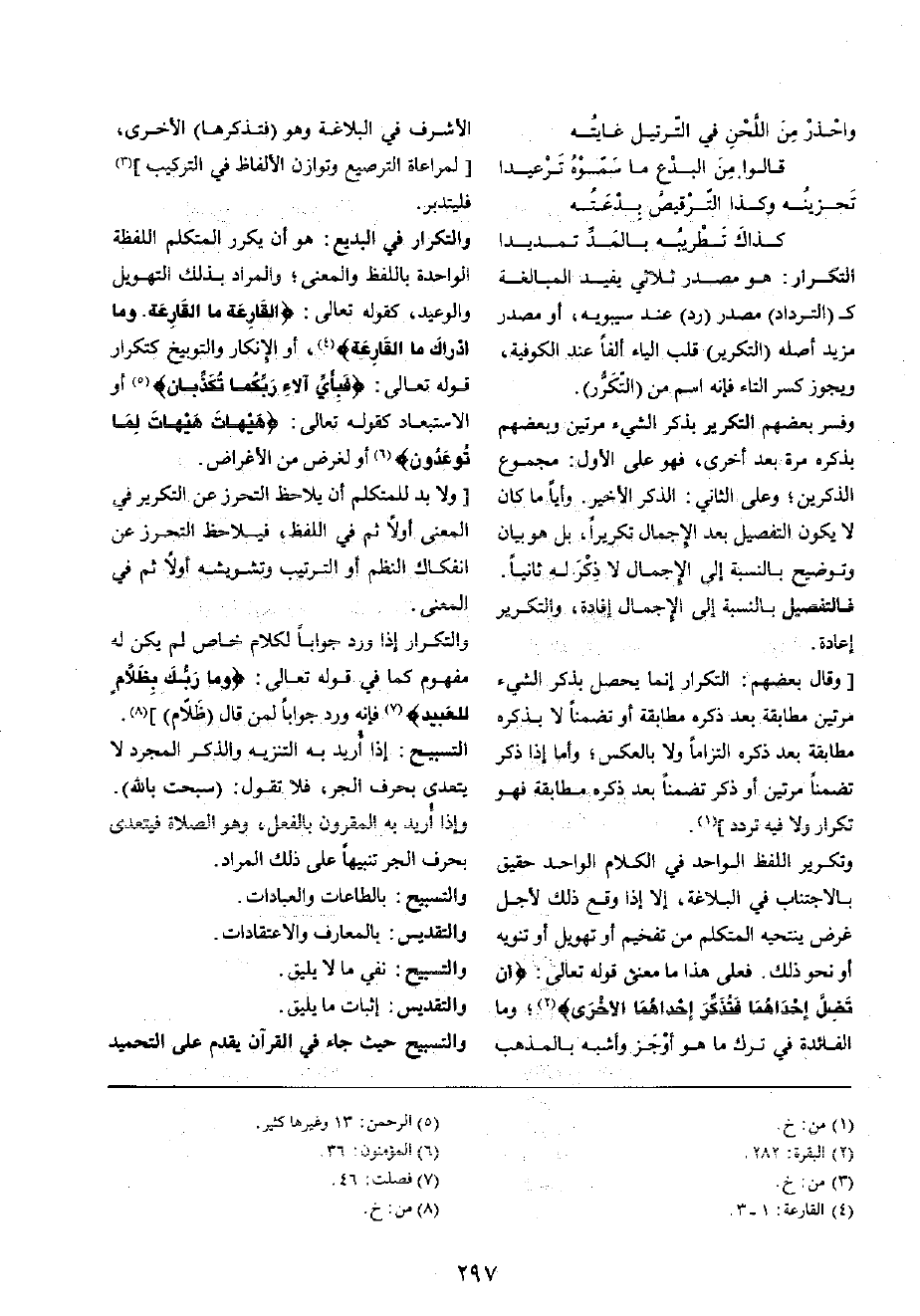 [وَلَا بُد للمتكلم أَن يُلَاحظ التَّحَرُّز عَن التكرير فِي الْمَعْنى أَولا ثمَّ فِي اللَّفْظ، فيلاحظ التَّحَرُّز عَن انفكاك النّظم أَو التَّرْتِيب وتشويشه أَولا ثمَّ فِي الْمَعْنى