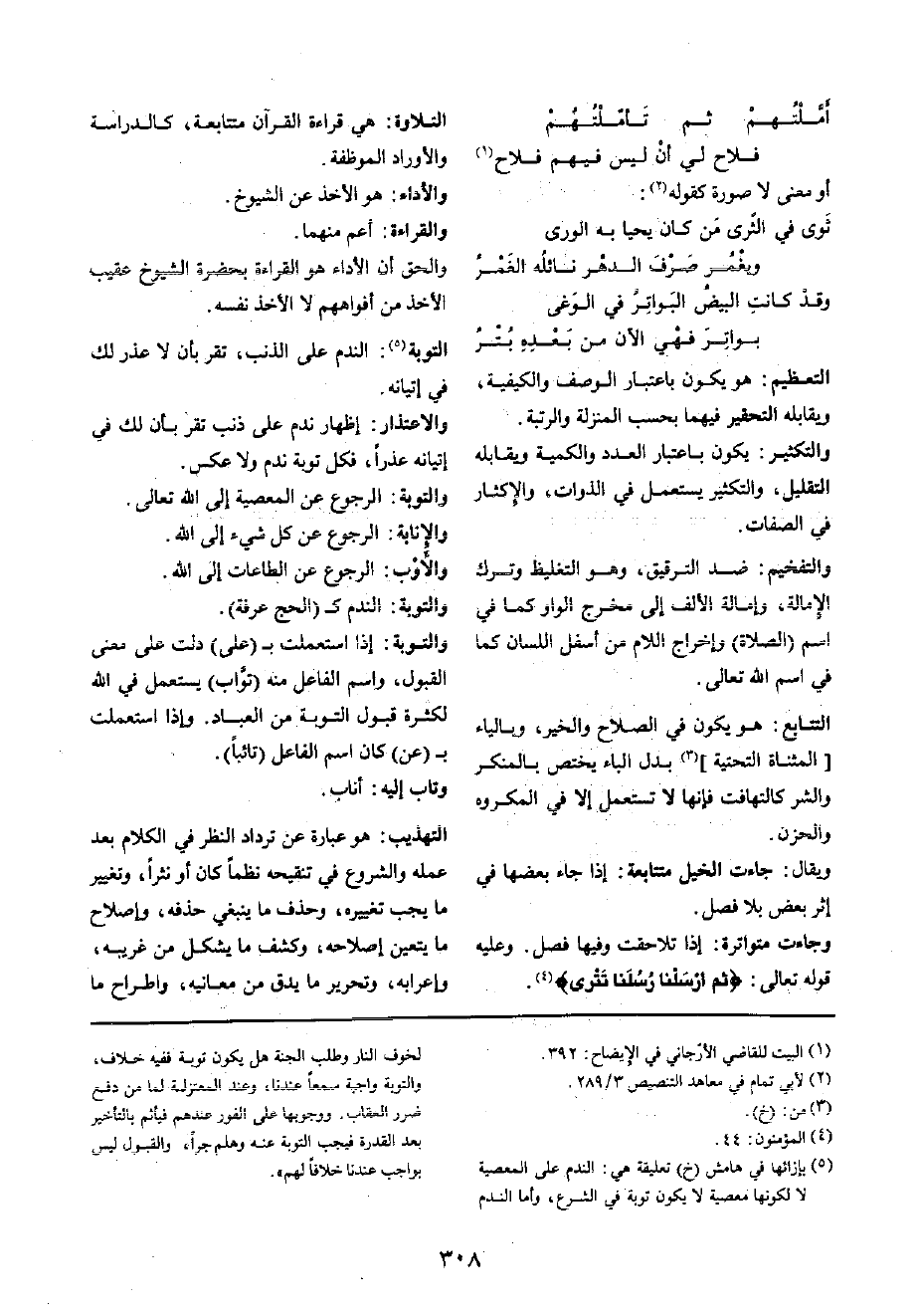 وَالتَّوْبَة: الرُّجُوع عَن الْمعْصِيَة إِلَى الله تَعَالَى