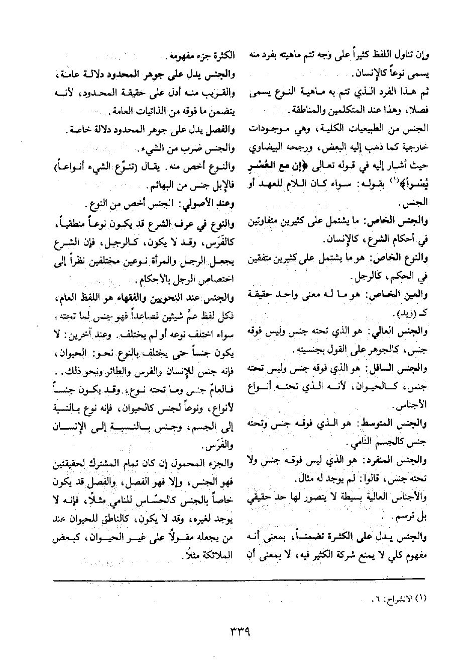 والأجناس الْعَالِيَة بسيطة لَا يتَصَوَّر لَهَا حد حَقِيقِيّ بل ترسم