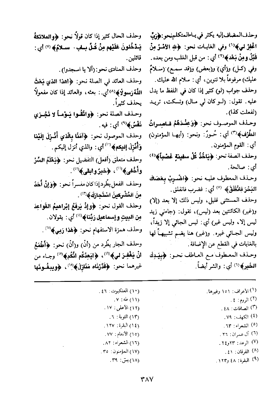 وَحذف القَوْل نَحْو: {وَإِذ يرفع إِبْرَاهِيم الْقَوَاعِد من الْبَيْت وَإِسْمَاعِيل رَبنَا} أَي: يَقُولَانِ