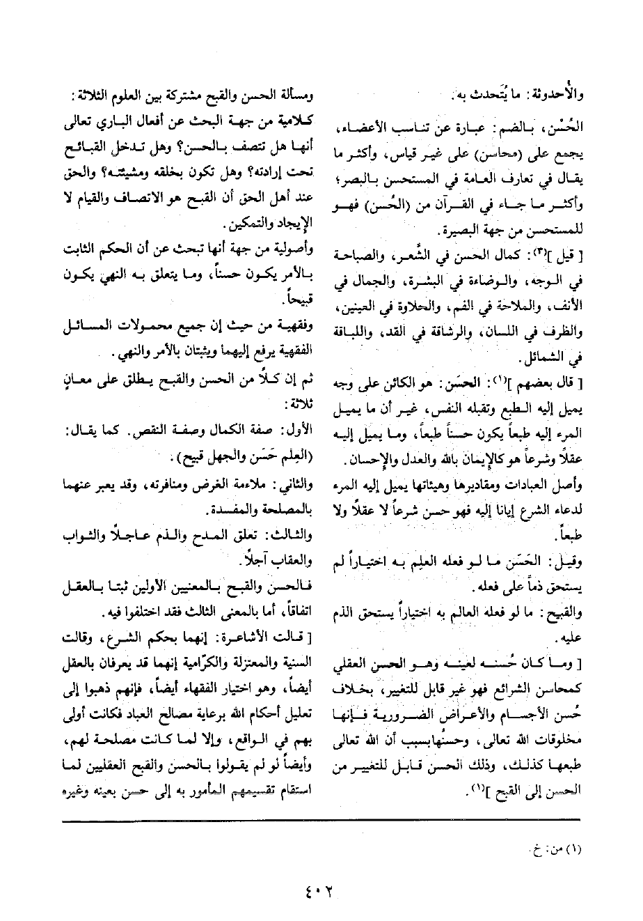 الأول: صفة الْكَمَال وَصفَة النَّقْص كَمَا يُقَال: (الْعلم حسن وَالْجهل قَبِيح)