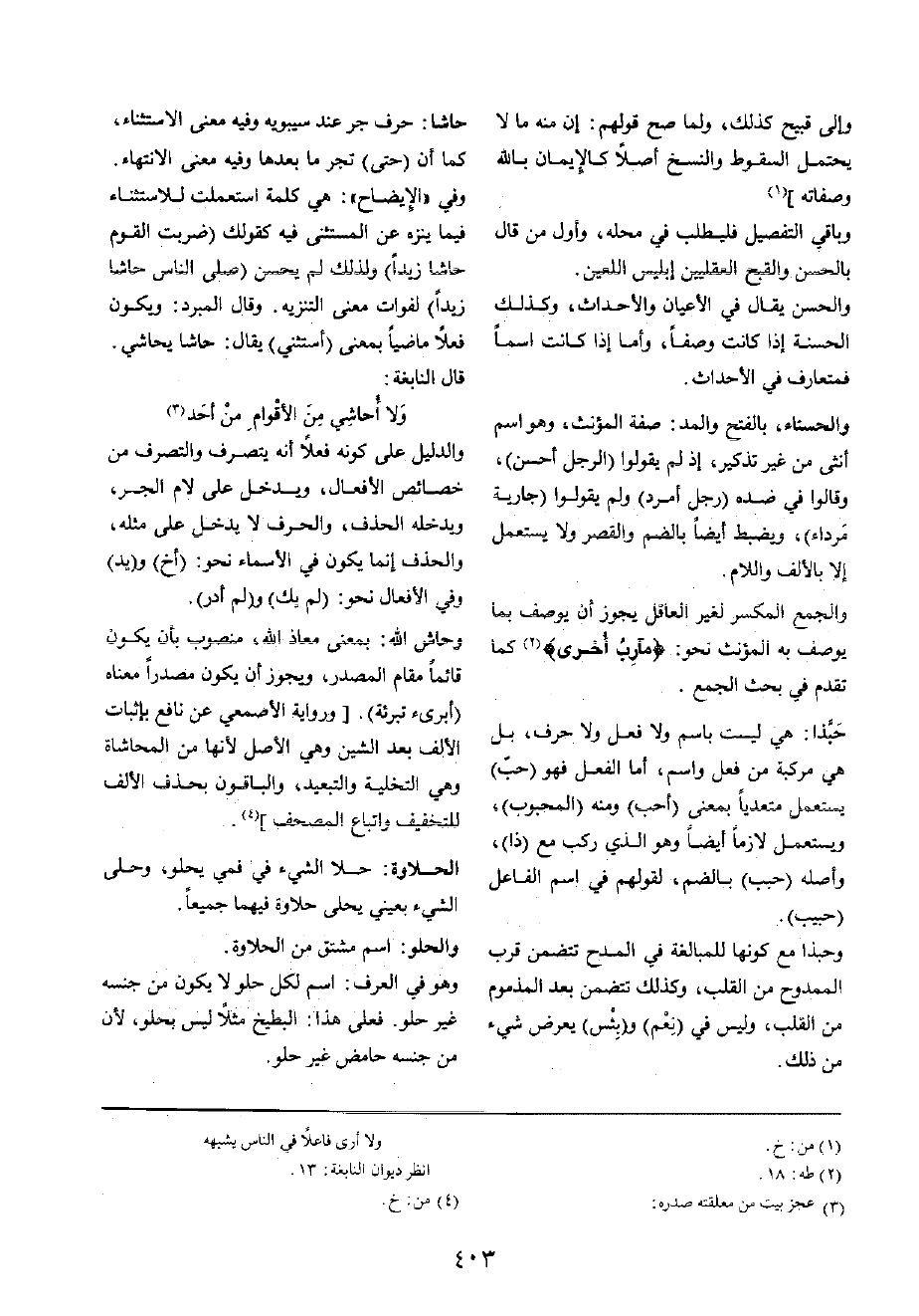 قَالَ النَّابِغَة: ... وَلَا أحاشي من الأقوام من أحد ... )