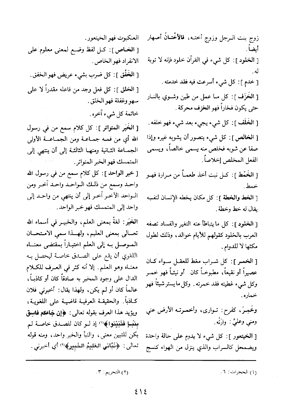 [الْخَاص] : كل لفظ وضع لِمَعْنى مَعْلُوم على الِانْفِرَاد فَهُوَ الْخَاص