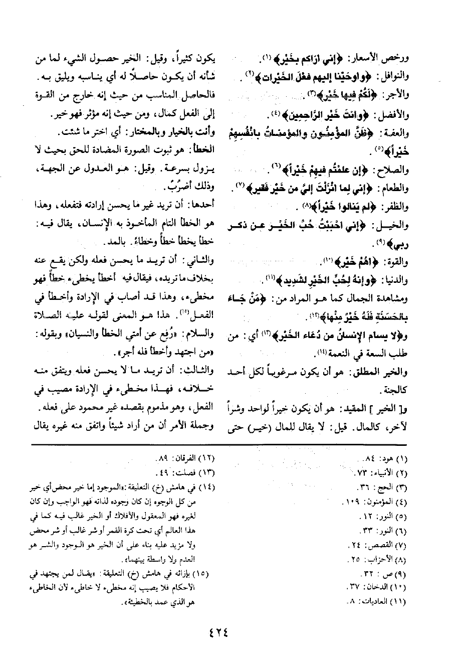 و [الْخَيْر] الْمُقَيد: هُوَ أَن يكون خيرا لوَاحِد وشرا لآخر، كَالْمَالِ قيل: لَا يُقَال لِلْمَالِ (خير) حَتَّى يكون كثيرا، وَقيل: الْخَيْر حُصُول الشَّيْء لما من شَأْنه أَن يكون حَاصِلا لَهُ أَي يُنَاسِبه ويليق بِهِ