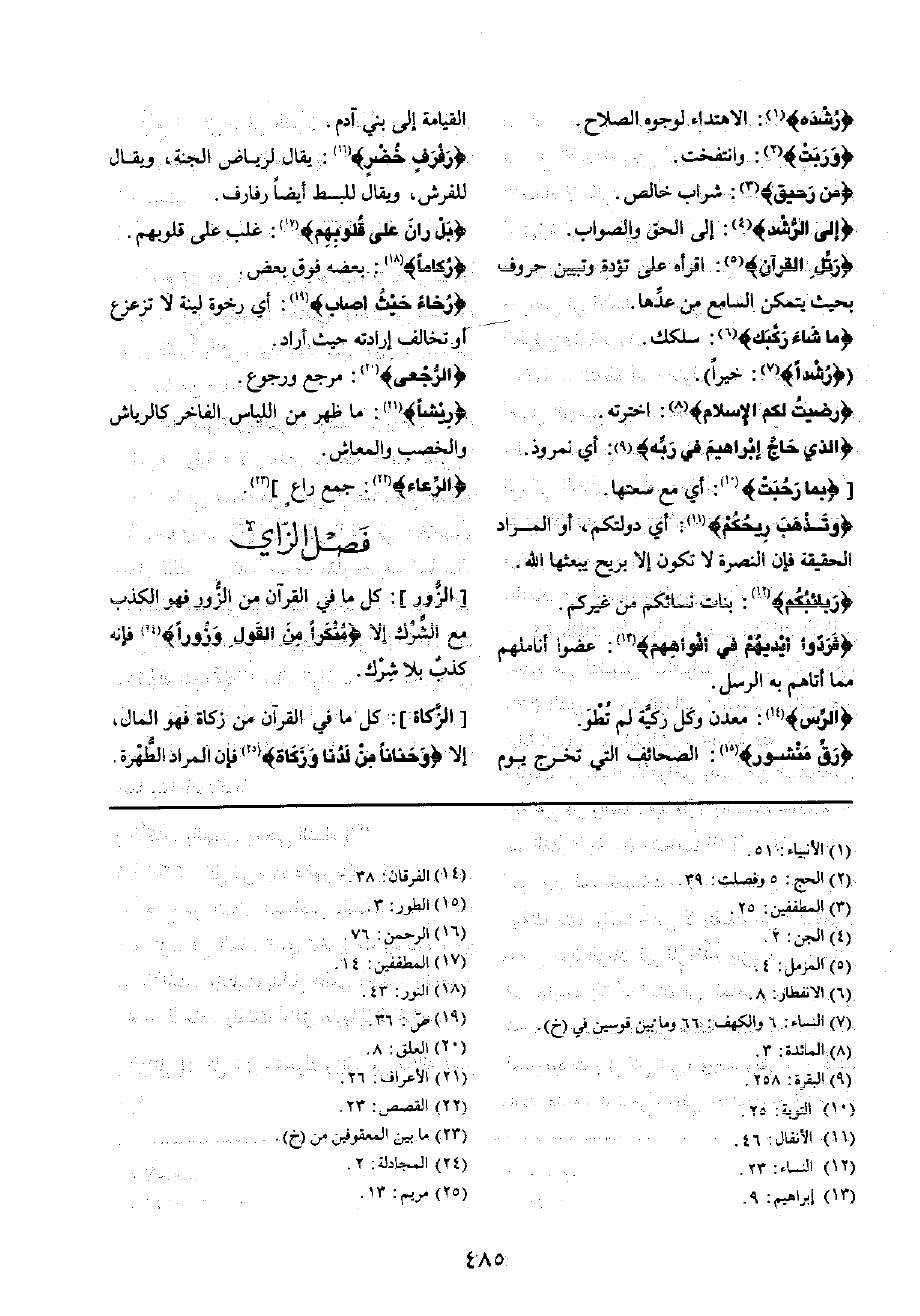 [الزَّكَاة] : كل مَا فِي الْقُرْآن من زَكَاة فَهُوَ المَال، إِلَّا {وَحَنَانًا من لدنا وَزَكَاة} فَإِن المُرَاد الطهرة