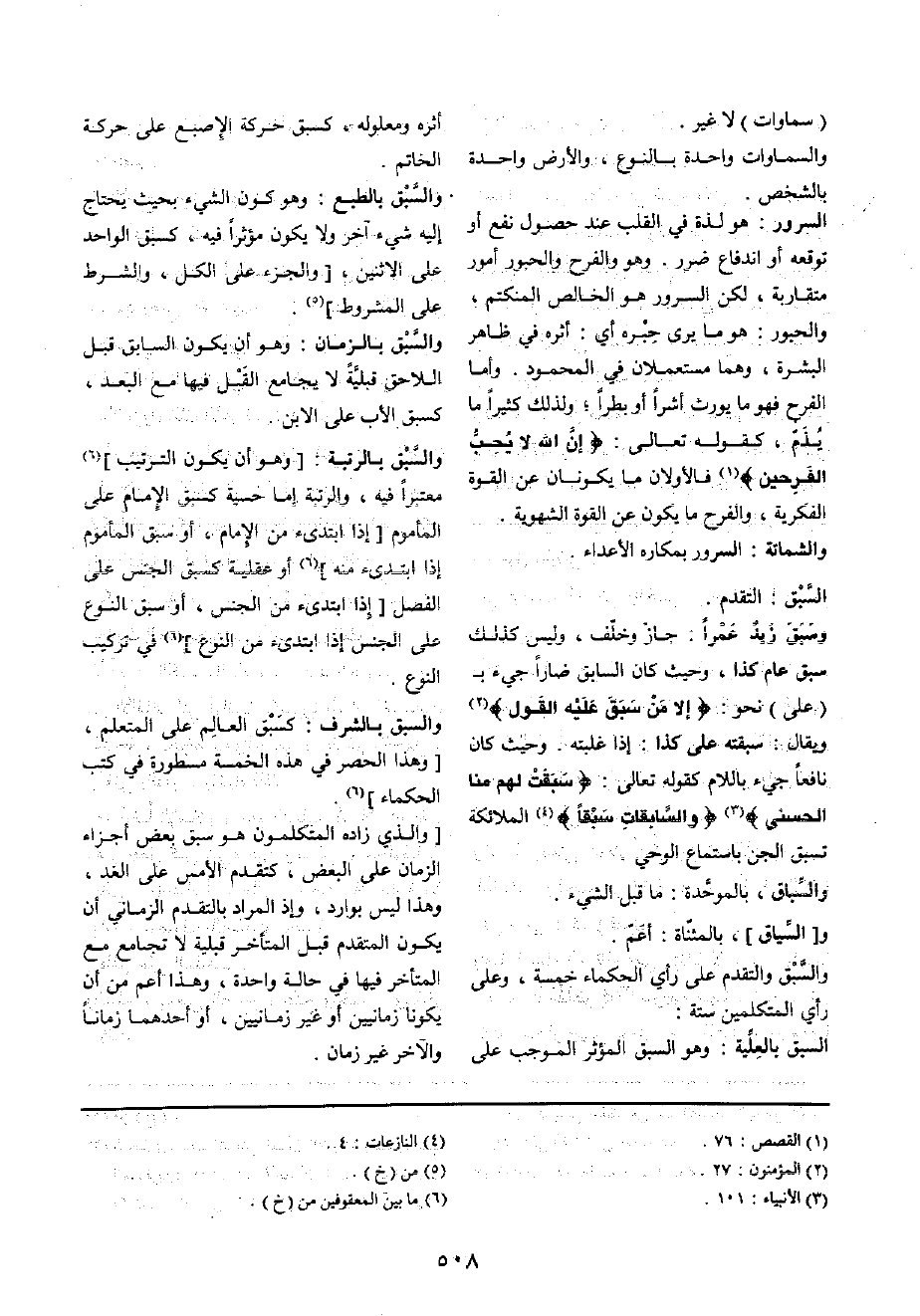 والسبق والتقدم على رَأْي الْحُكَمَاء خَمْسَة، وعَلى رَأْي الْمُتَكَلِّمين سِتَّة