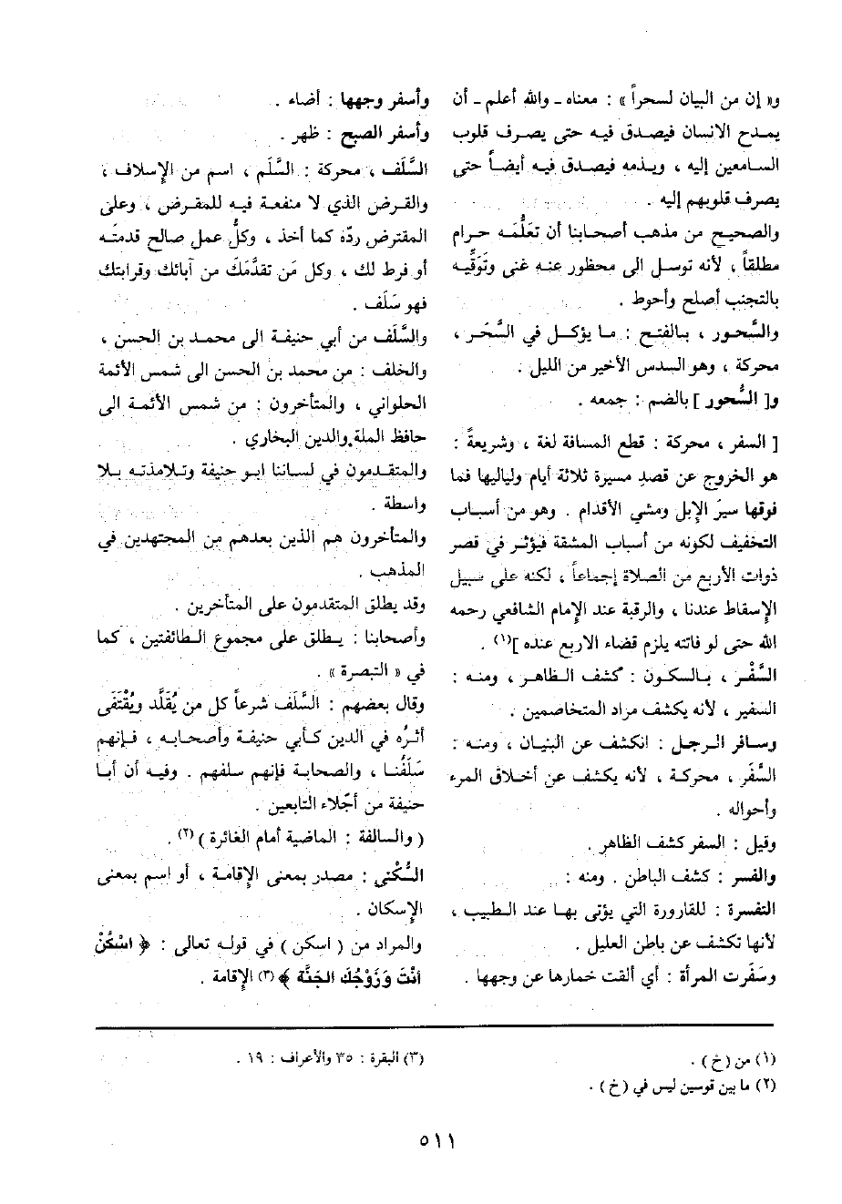 السّفر، بِالسُّكُونِ: كشف الظَّاهِر، وَمِنْه: السفير، لِأَنَّهُ يكْشف مُرَاد المتخاصمين