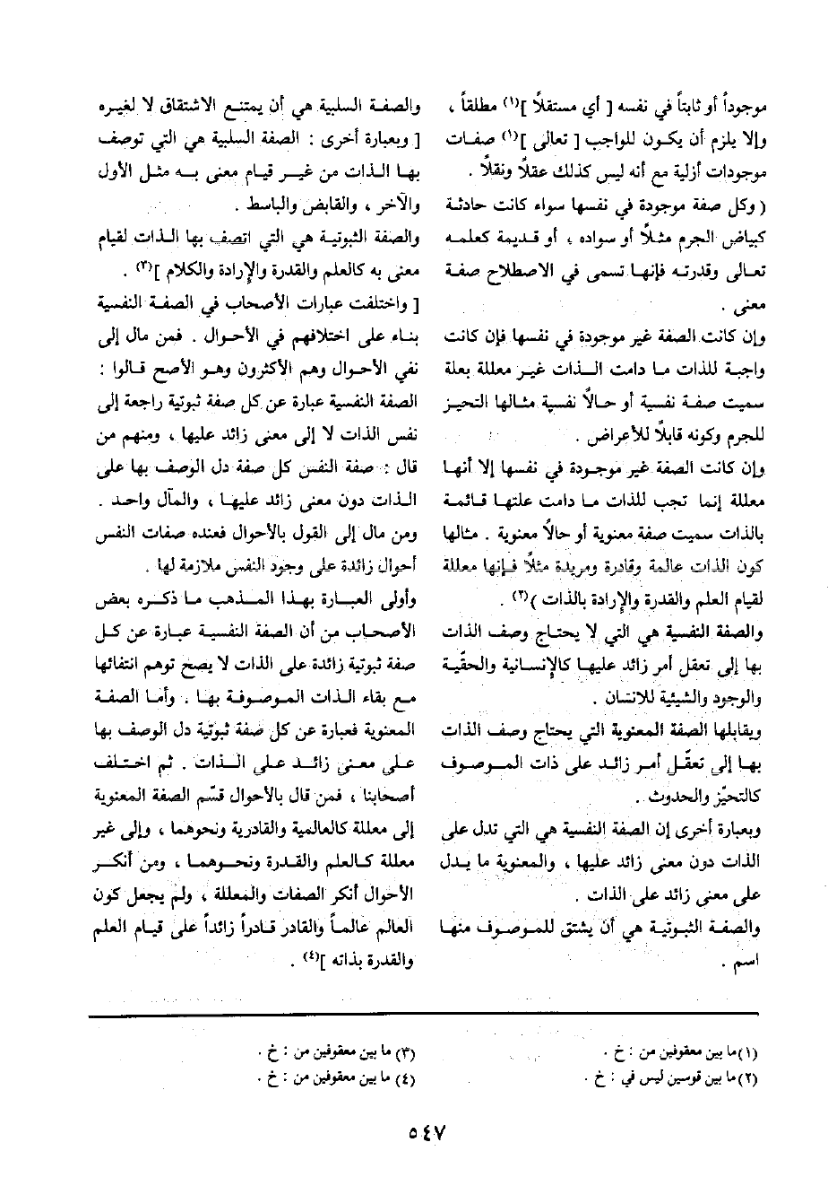 مَوْجُودا أَو ثَابتا فِي نَفسه [أَي مُسْتقِلّا] مُطلقًا، وَإِلَّا يلْزم أَن يكون للْوَاجِب [تَعَالَى] صِفَات موجودات أزلية مَعَ أَنه لَيْسَ كَذَلِك عقلا ونقلا