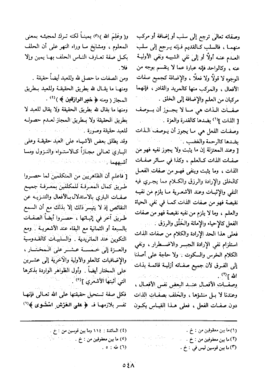 [فَاعْلَم أَن الظاهريين من الْمُتَكَلِّمين لما حصروا طرق كَمَال الْمعرفَة للمكلفين بِمَعْرِِفَة جَمِيع صِفَات الْبَارِي بالاستدلال بالأفعال والتنزيه عَن النقائص إِذْ لَا يَتَيَسَّر ذَلِك إِلَّا بذلك مَعَ أَن السّمع طَرِيق آخر فِي إِثْبَاتهَا، حصروا أَيْضا الصِّفَات بالسبعة أَو الثَّمَانِية مَعَ الْبَقَاء عِنْد الأشعرية وَمَعَ التكوين عِنْد الماتريدية والسلبيات كالقدوسية والعزة إِلَى خَمْسَة عشر على الْمُخْتَار، والإضافات كالعلو والأولية والآخرية إِلَى عشْرين على الْمُخْتَار أَيْضا وَأول الظَّوَاهِر الْوَارِدَة بذكرها الَّتِي أثبتها الْأَشْعَرِيّ]