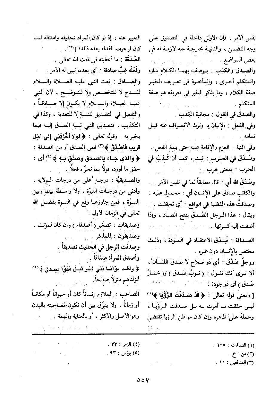 والصادق: نعت النَّبِي عَلَيْهِ الصَّلَاة وَالسَّلَام للمدح لَا للتخصيص وَلَا للتوضيح، لِأَن النَّبِي عَلَيْهِ الصَّلَاة وَالسَّلَام لَا يكون إِلَّا صَادِقا، والتفعيل فِي التَّصْدِيق للنسبة لَا للتعدية، وَكَذَا فِي التَّكْذِيب، فتصديق النَّبِي نِسْبَة الصدْق إِلَيْهِ فِيمَا يخبر بِهِ وَقَوله تَعَالَى: {لَوْلَا أخرتني إِلَى أجل قريب فَأَصدق} فَمن الصدْق أَو من الصَّدَقَة: {وَالَّذِي جَاءَ بِالصّدقِ وَصدق بِهِ} أَي: حقق مَا أوردهُ قولا بِمَا تحراه فعلا