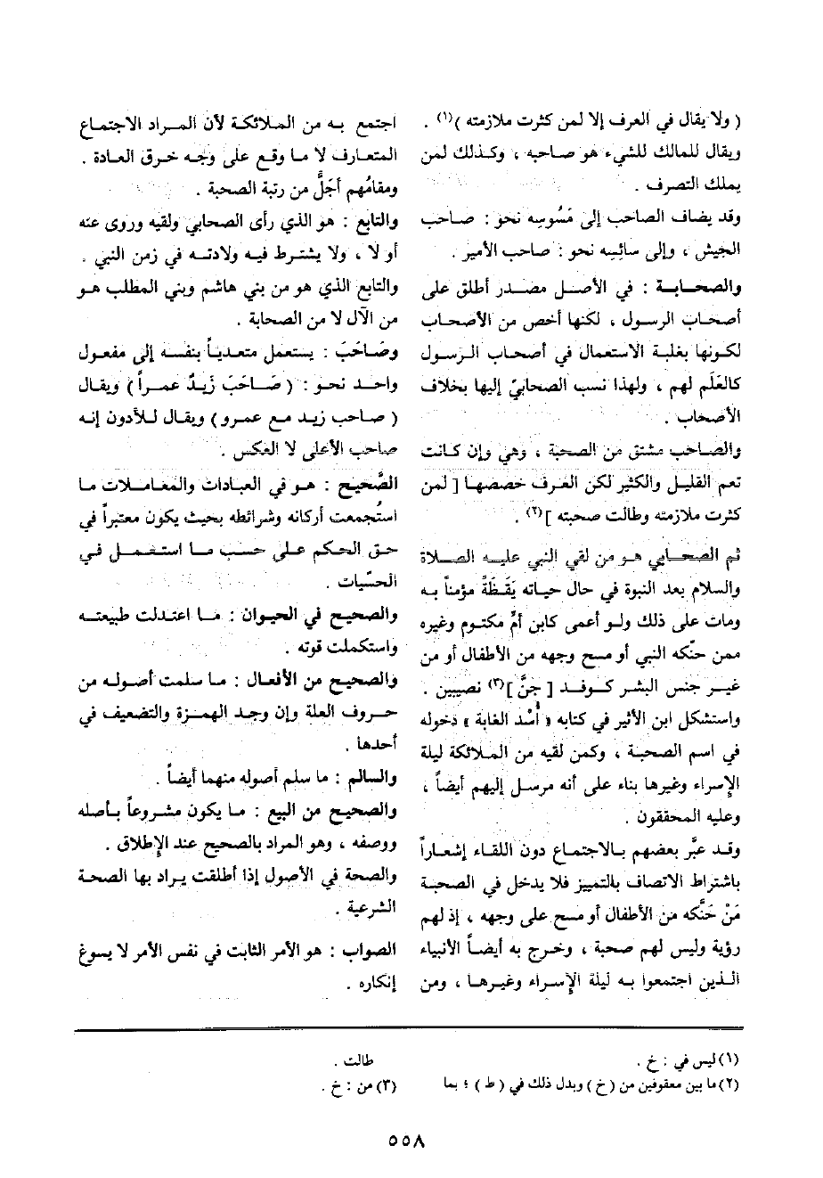 ثمَّ الصَّحَابِيّ هُوَ من لَقِي النَّبِي عَلَيْهِ الصَّلَاة وَالسَّلَام بعد النُّبُوَّة فِي حَال حَيَاته يقظة مُؤمنا بِهِ وَمَات على ذَلِك وَلَو أعمى كَابْن أم مَكْتُوم وَغَيره مِمَّن حنكه النَّبِي أَو مسح وَجهه من الْأَطْفَال أَو من غير جنس الْبشر كوفد [جن] نَصِيبين