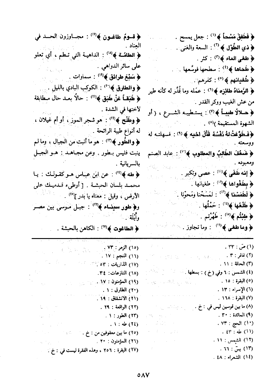 {طه} : عَن ابْن عَبَّاس هُوَ كَقَوْلِك: يَا مُحَمَّد بِلِسَان الْحَبَشَة [أوطئ قَدَمَيْك على الأَرْض، وَقيل: مَعْنَاهُ يَا بدر]