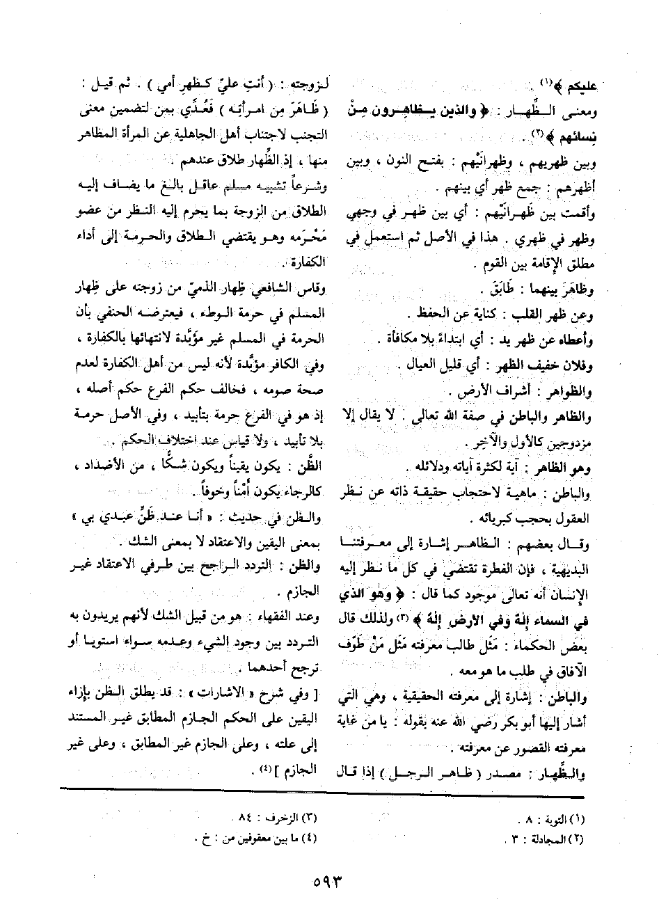 وَالظِّهَار: مصدر (ظَاهر الرجل) إِذا قَالَ لزوجته: (أَنْت عَليّ كَظهر أُمِّي)