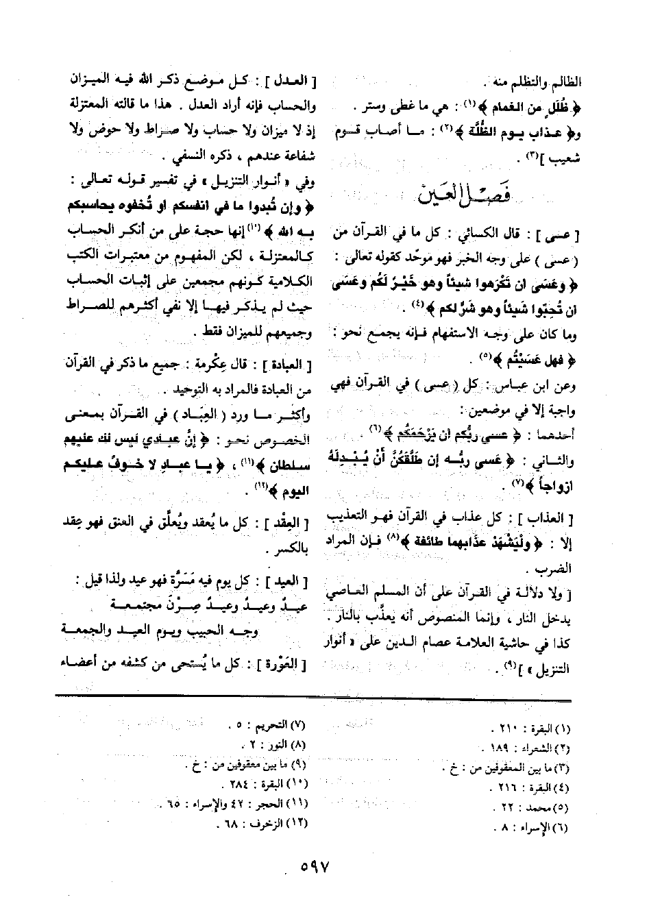 كَذَا فِي حَاشِيَة الْعَلامَة عِصَام الدّين على " أنوار التَّنْزِيل "] [الْعدْل] : كل مَوضِع ذكر الله فِيهِ الْمِيزَان والحساب فَإِنَّهُ أَرَادَ الْعدْل هَذَا مَا قالته الْمُعْتَزلَة إِذْ لَا ميزَان وَلَا حِسَاب وَلَا صِرَاط وَلَا حَوْض وَلَا شَفَاعَة عِنْدهم، ذكره النَّسَفِيّ